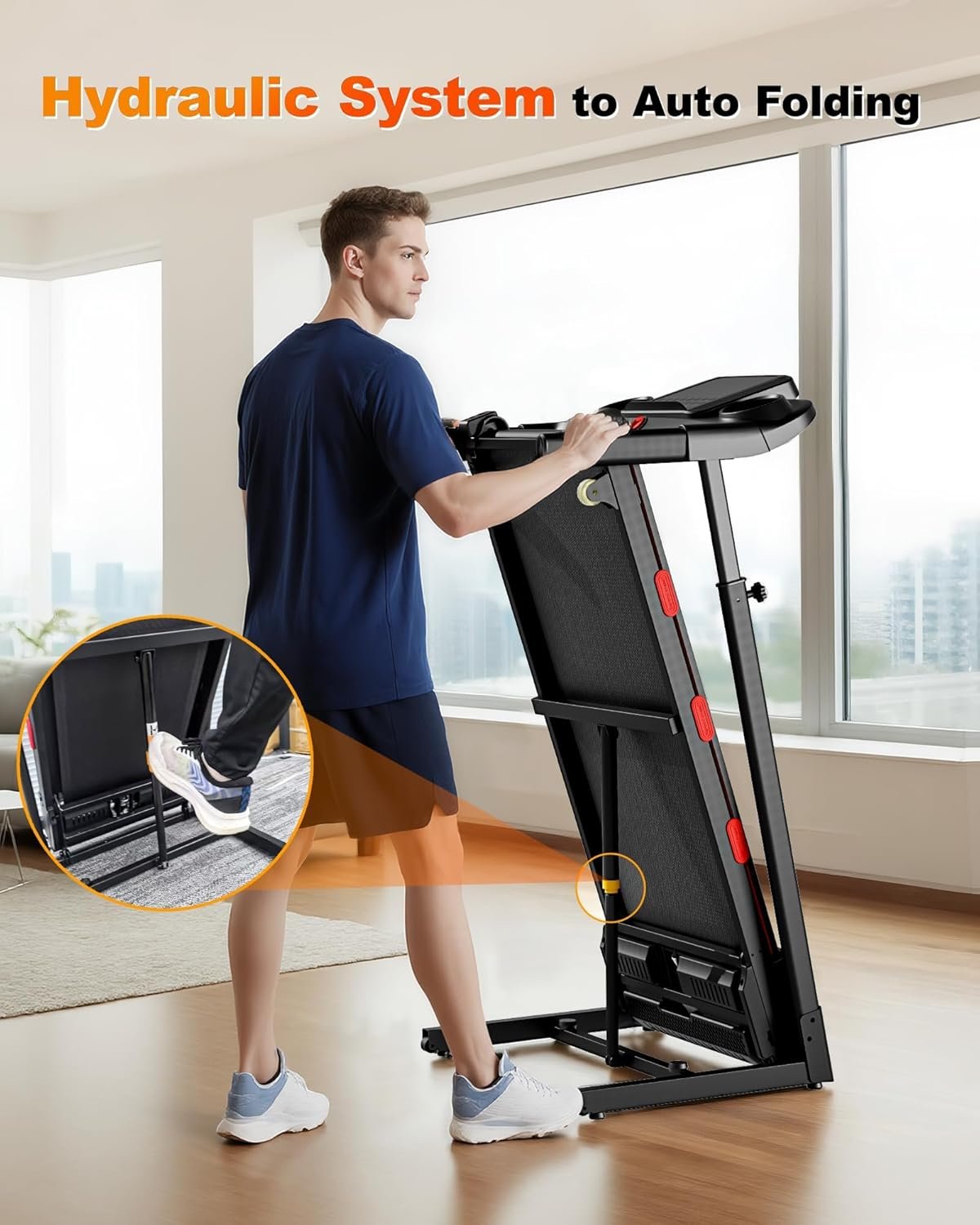 3.5HP Brushless Motor & 350 LB Capacity: Built with a powerful brushless motor, this folding treadmill with incline runs quietly at speeds from 0.6–8.7MPH. Its solid steel frame supports up to 350 lbs, making it a durable treadmill for home and a reliable treadmill with auto incline for every user
