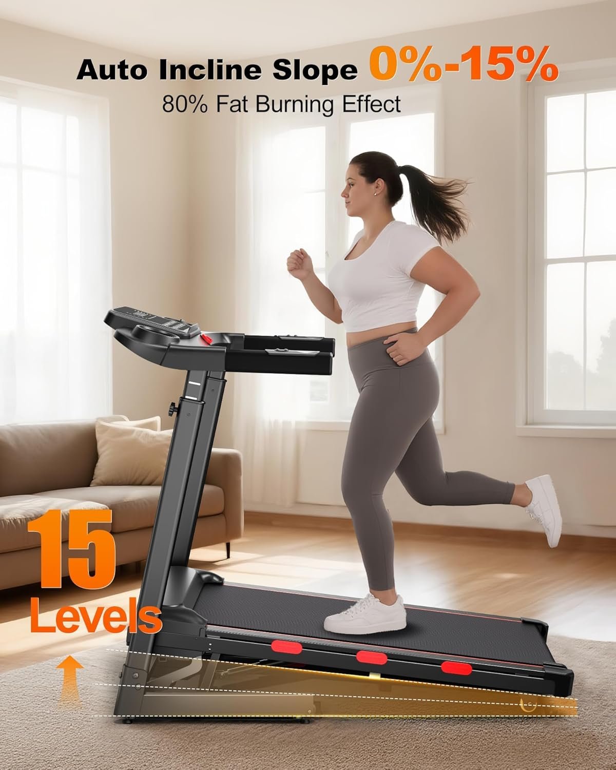 15% Auto Incline Treadmill for Home, Double Deck Treadmills with Incline,3.5HP Treadmills with