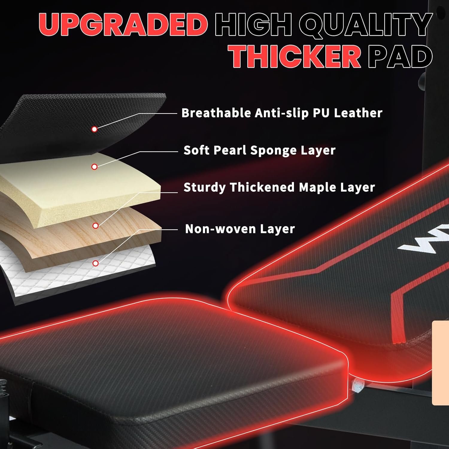 【Sturdy & Safe Design】Featuring a stable triangular design made from high-quality, thick materials, this weight bench ensures safety and stability during your workouts. Weight plates can be placed on the front and back tubes to further enhance stability. Additionally, the non-slip rubber pads protect your floor from scratches while providing added safety during exercises.
