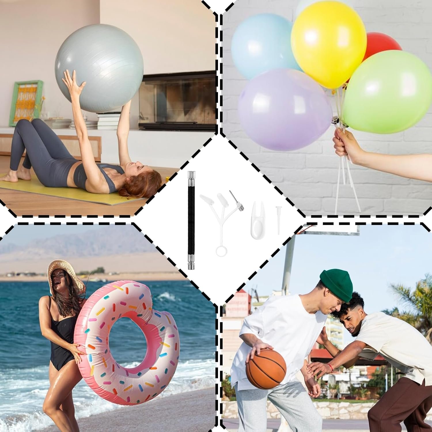 Function Introduction: This volleyball replacement stopper is a ball inflation set that can inflate a variety of inflatable products, such as yoga balls, swimming rings, balloons, fitness balls, balance training balls, air mattresses, and air pump accessories
