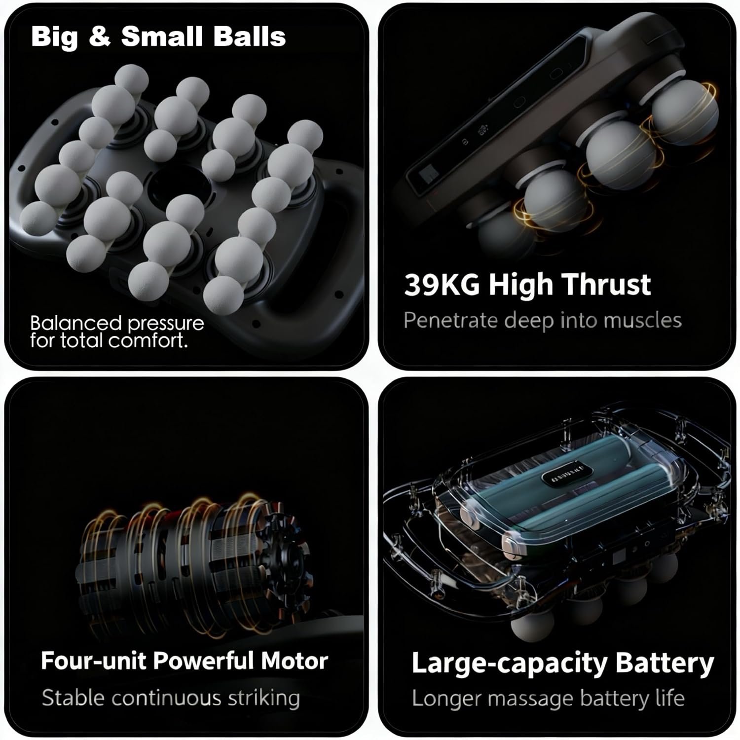 24-Head Full-Body Massage: Includes 24 interchangeable heads for precise care of shoulders, waist, legs, back, arms, and more. The wide-coverage design helps refresh and relax your entire body.