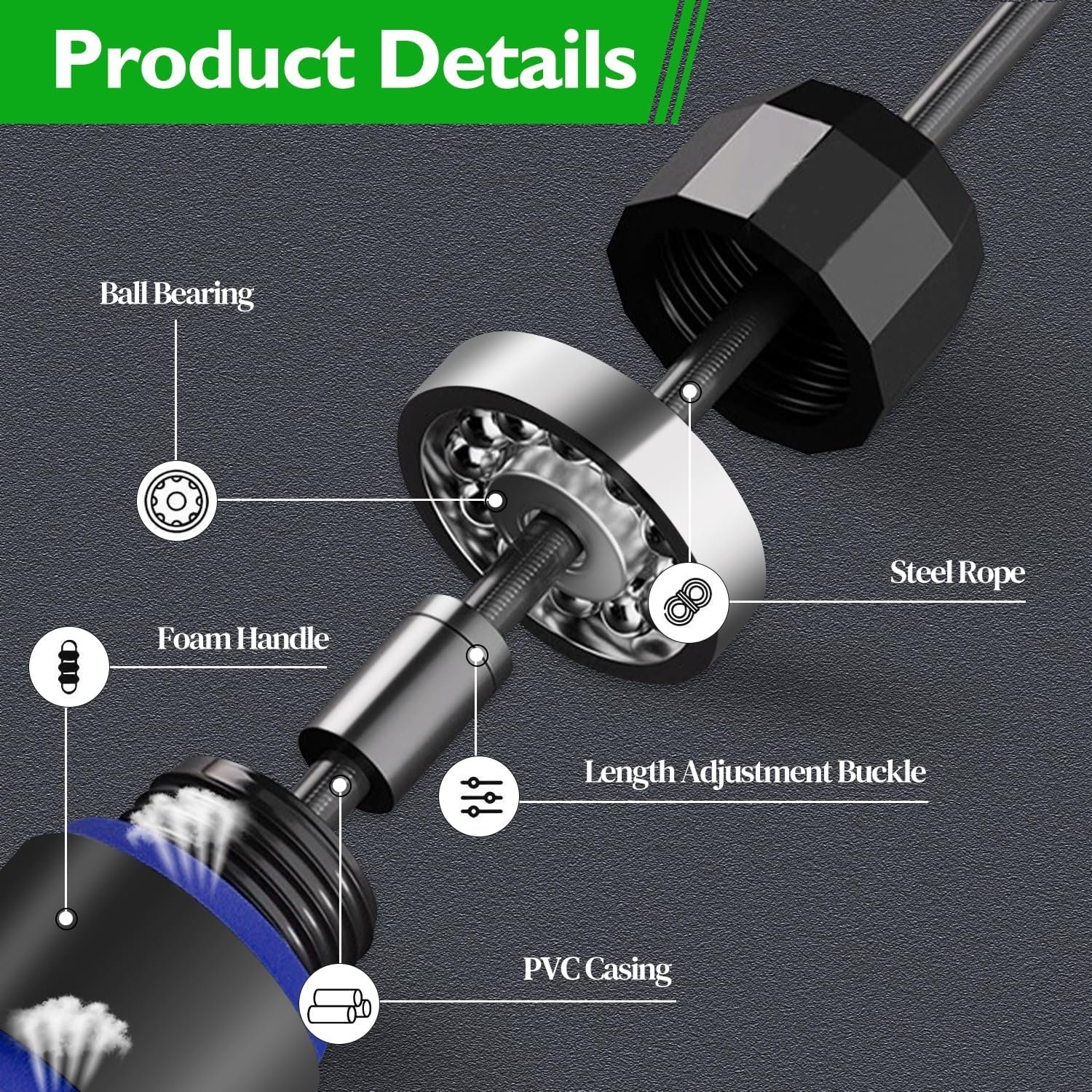 High quality: The steel wire rope inside the skipping rope is coated with PVC, which has good toughness and is not easy to break. The surface is smooth and not easy to scratch. Its handle surface is covered with soft memory foam, providing you with a comfortable grip.