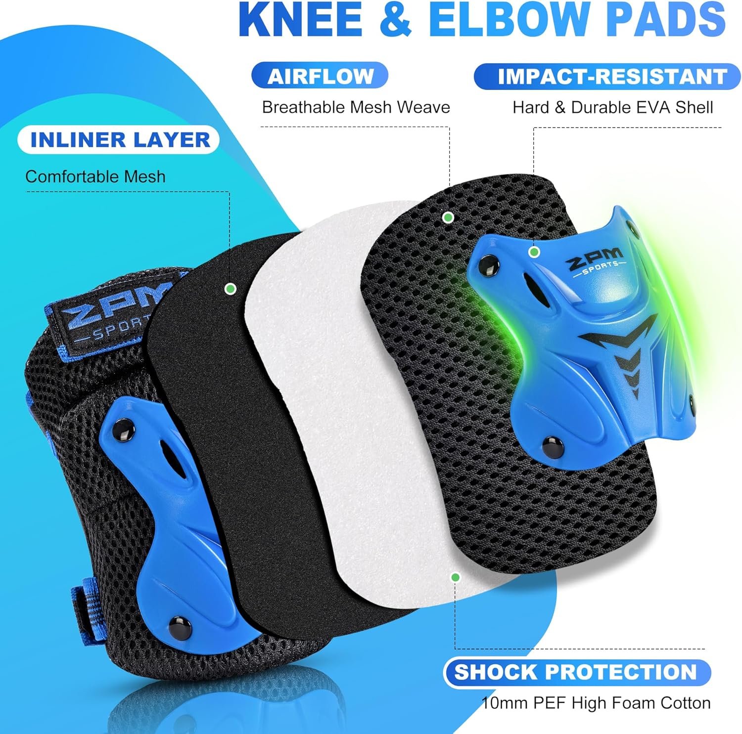 Durable & Comfortable: We prioritize safety and comfort in our protective gear. The knee pads and elbow pads feature an EVA shell that effectively absorbs external impacts, while the breathable fabric lining and mesh surface provide ventilation and a snug fit. The 10mm PEF high foam cotton interior further reduces impact and ensures optimal protection