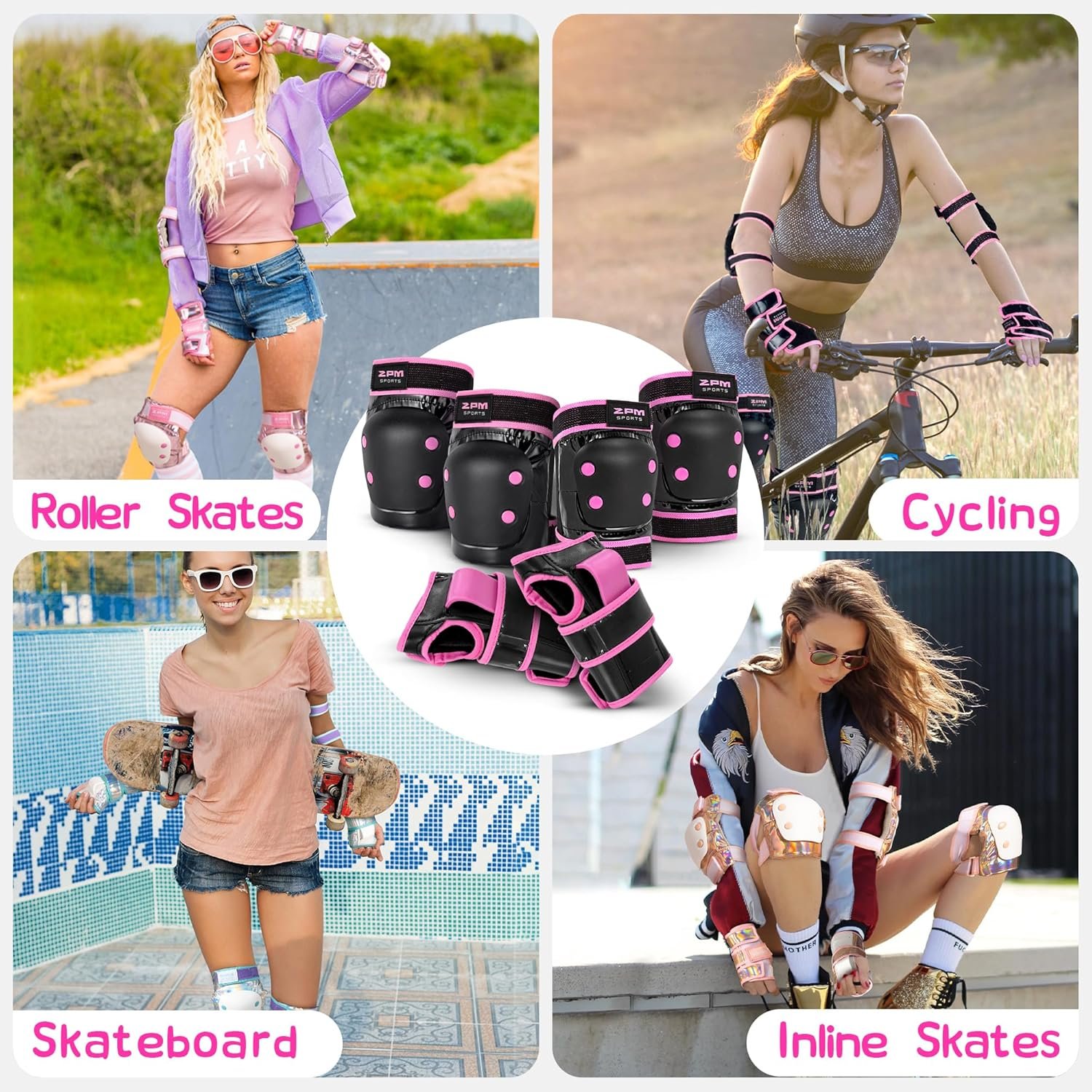 2PM SPORTS Knee Pads for Women, Wrist Guards Knee and Elbow Pads Set with Drawstring Bag, Protective
