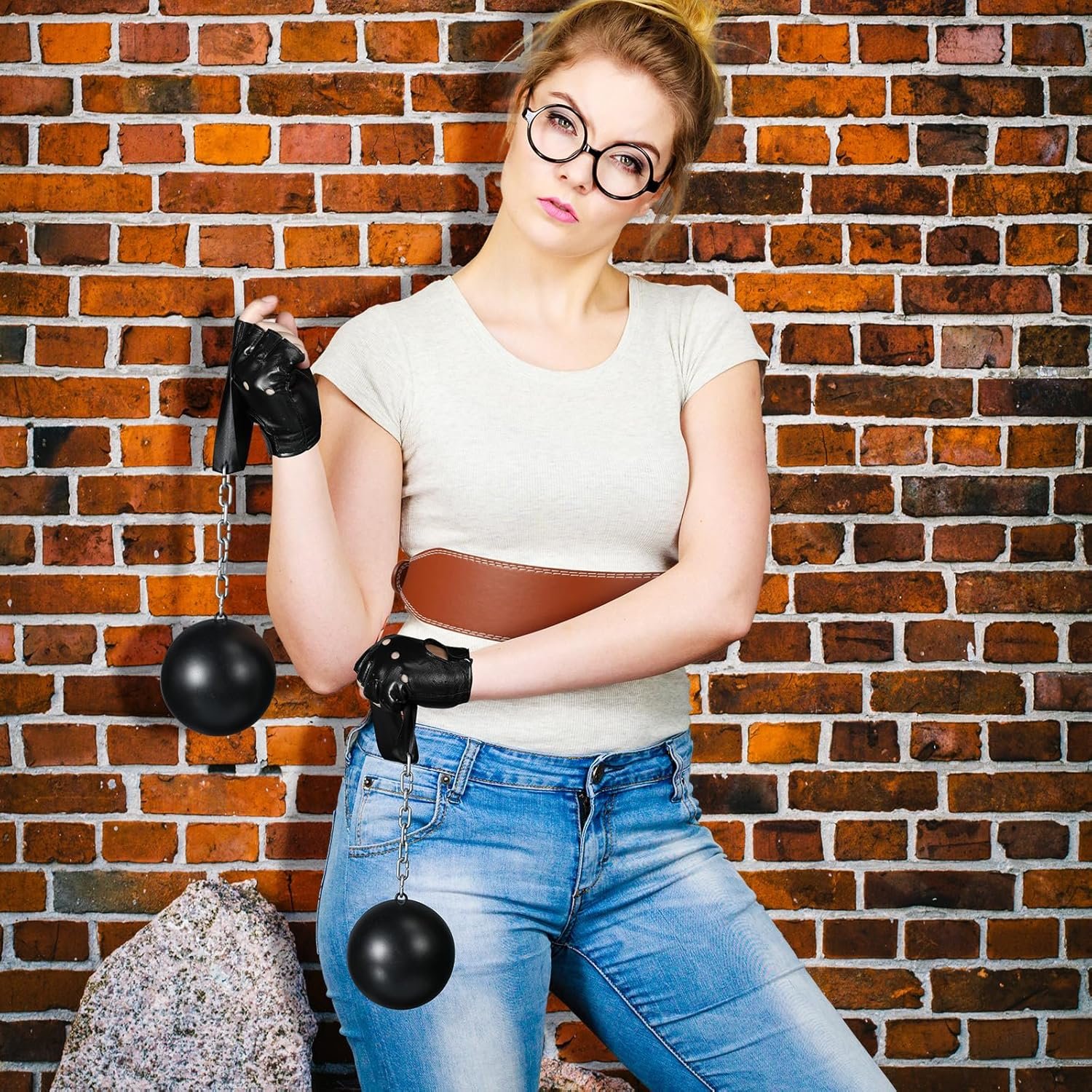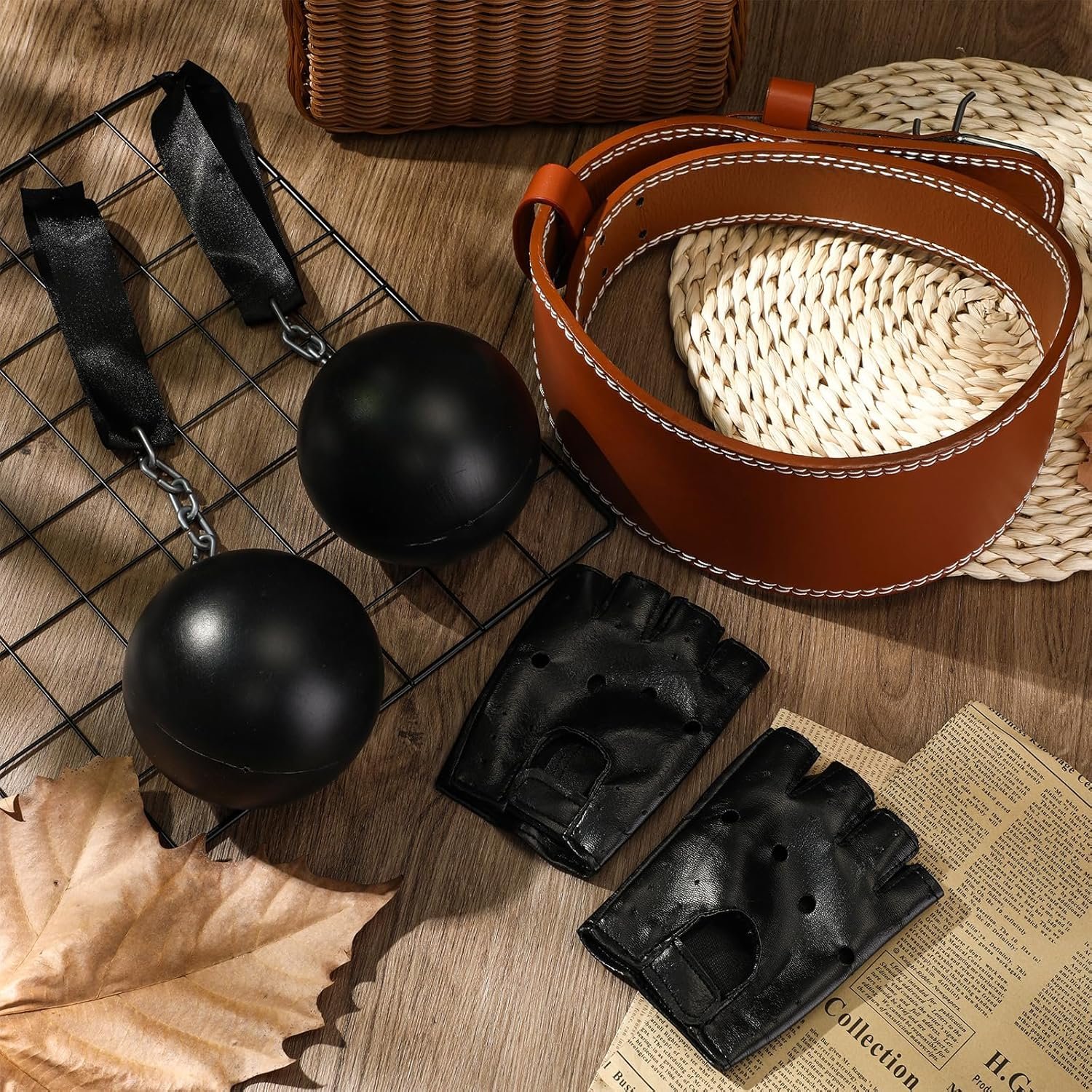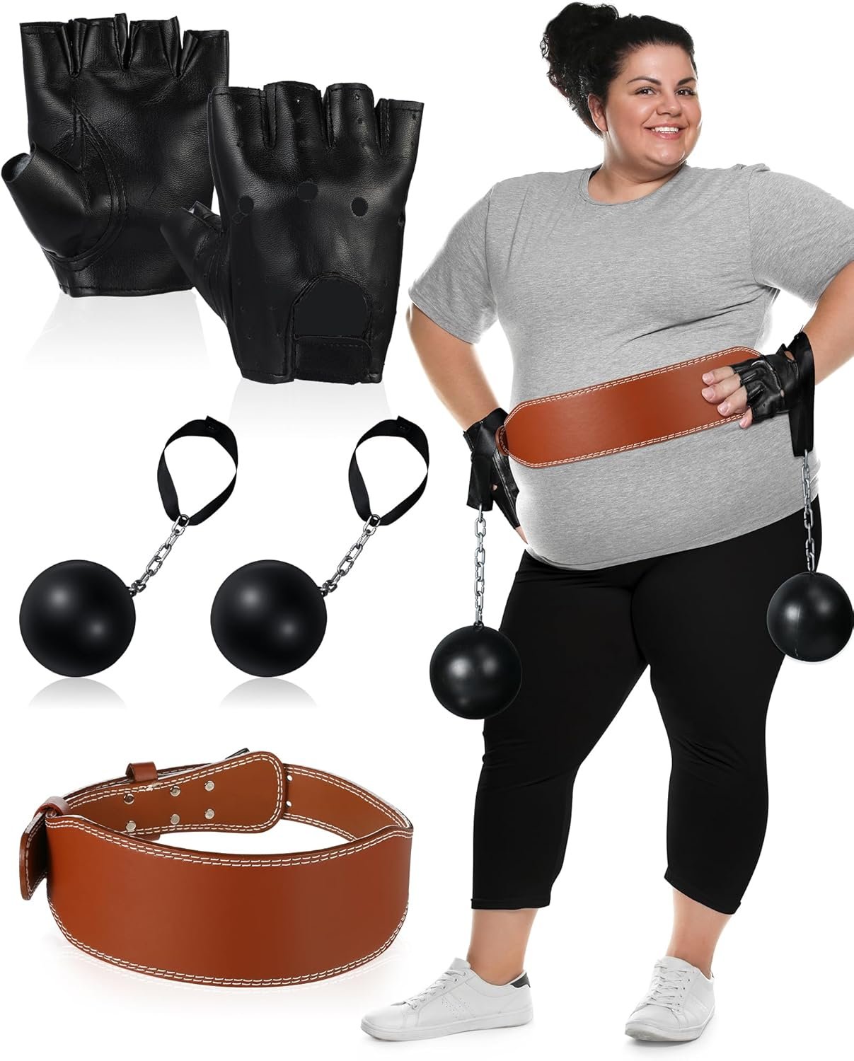 4 reviews for 4 Pcs Halloween Costume Accessory Adults Weight Lifting Belt Prisoner Chain Fingerless Gloves for