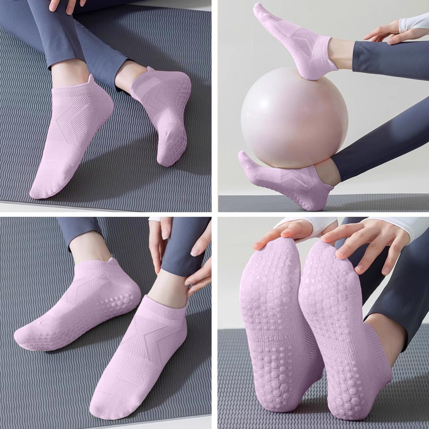 7 Pairs Pilates Socks with grips for Women- Non Slip, Ankle Yoga Socks for Yoga, Pilates, Ballet &