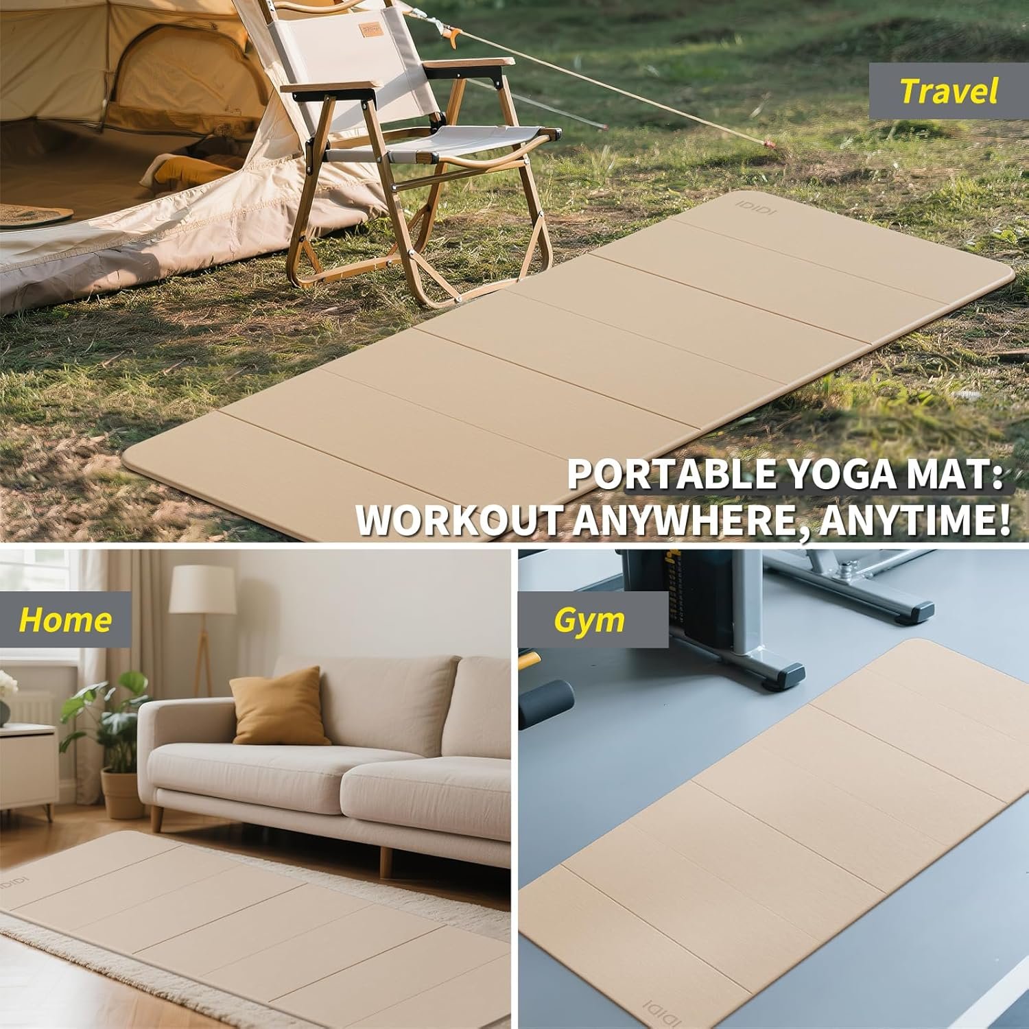 ULTRA-WIDE AND ULTRA-LARGE CONTACT SURFACE: Tired of cramped standard yoga mats—especially if you’re tall? Our large foldable yoga mat features a roomy 74″ x 31.5″ surface, so it’s a true extra wide yoga mat that covers and protects all your joints for more natural movements, and as a practical folding yoga mat, it’s easy to carry too—ideal for anyone wanting space without sacrificing portability.