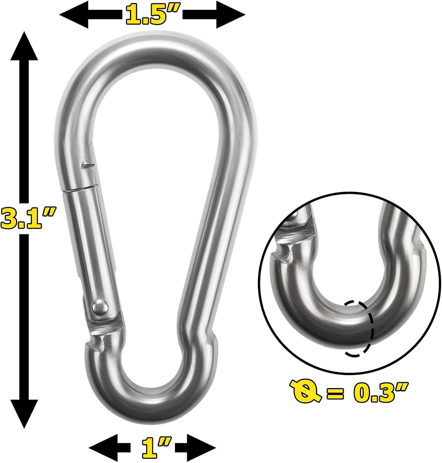 COMPACT DESIGN: Set of 4 – 3.1″ x 1.5″ Stainless Steel snap hook. It can be used with one hand. Snap hook lock gate prevents items from unwanted detachment.