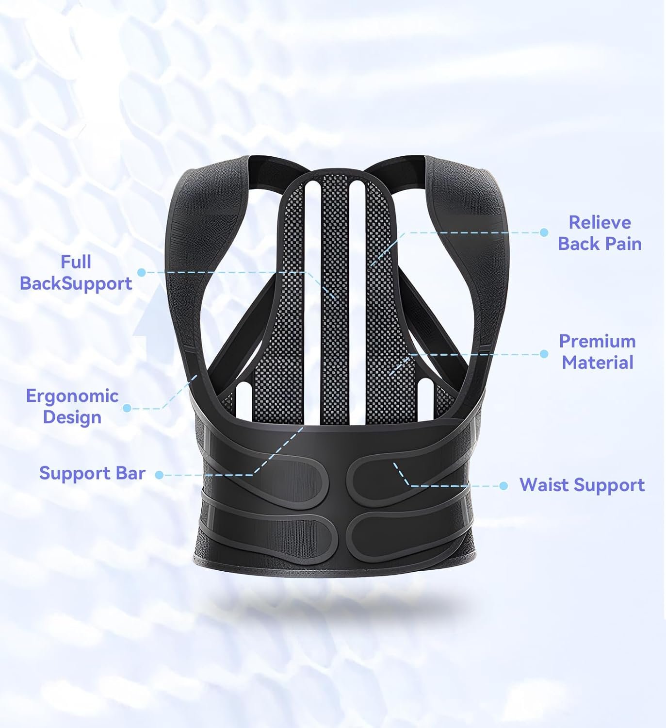 Adjustable Posture Corrector Brace – Back & Shoulder Support for Women and Men – Relieves Pain from