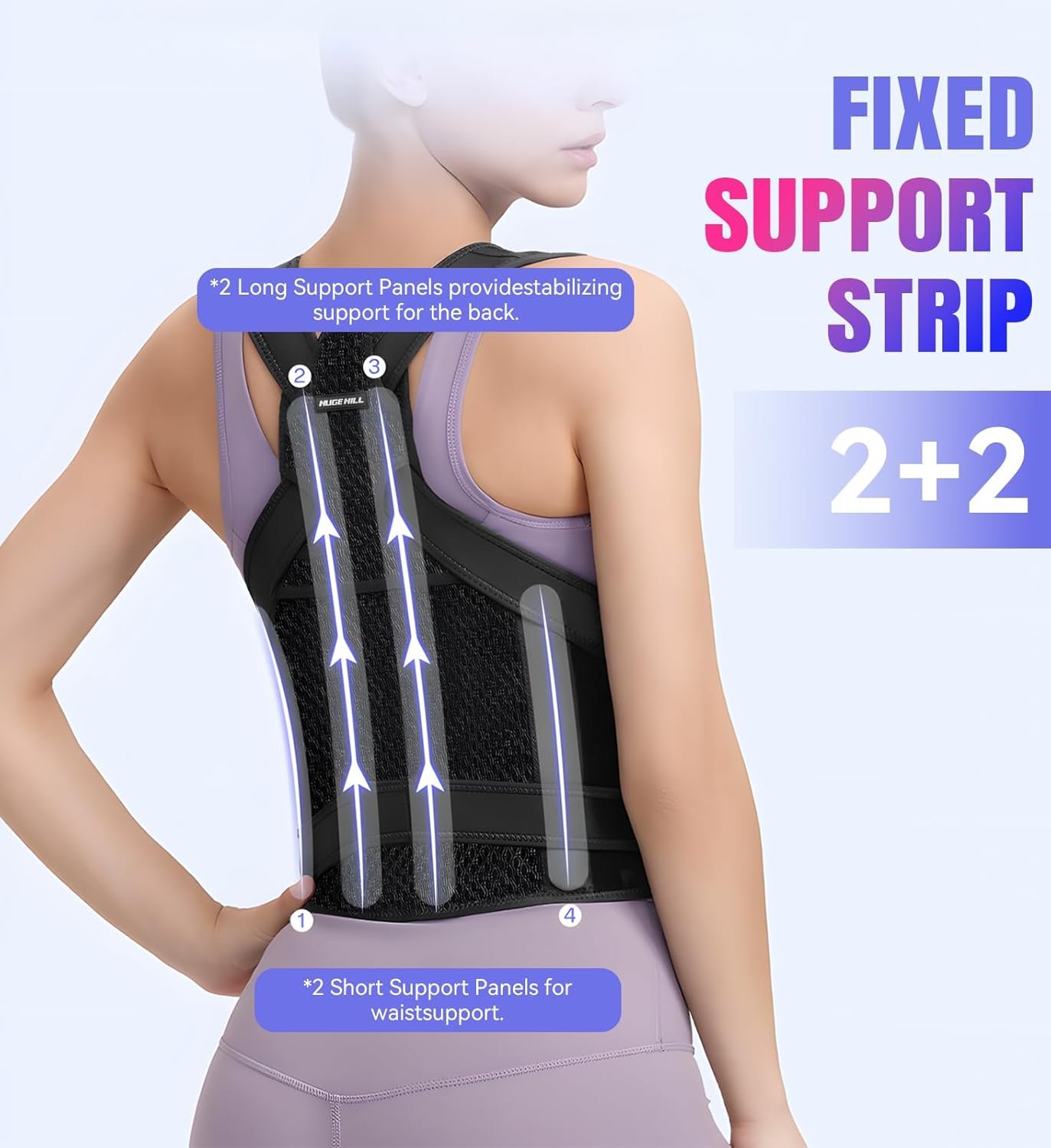 ERGONOMIC DESIGN: Specially engineered back brace with dual adjustable straps provides customizable support and alignment for proper posture correction