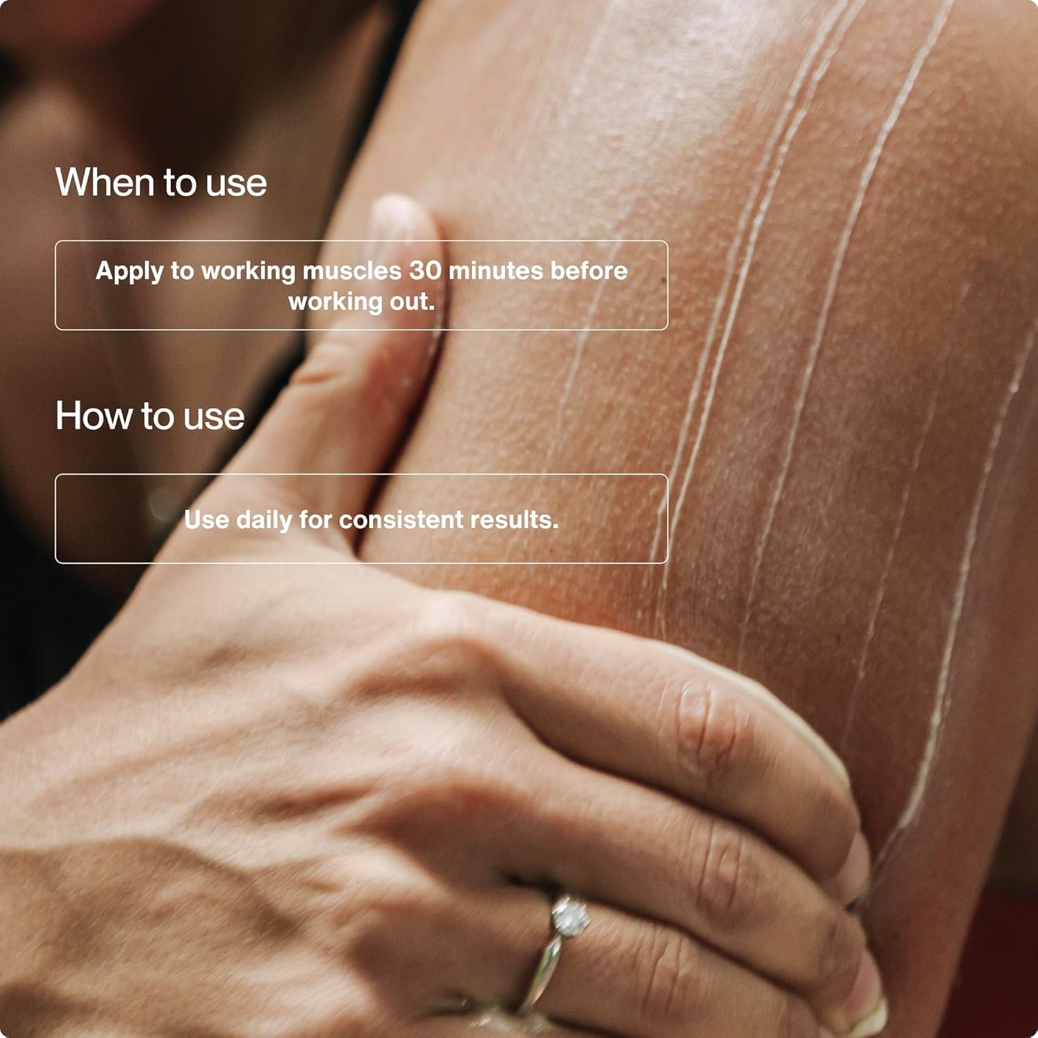 Maximize Use – Apply generously to working muscles 30 minutes before working out to help increase power output & recover faster.