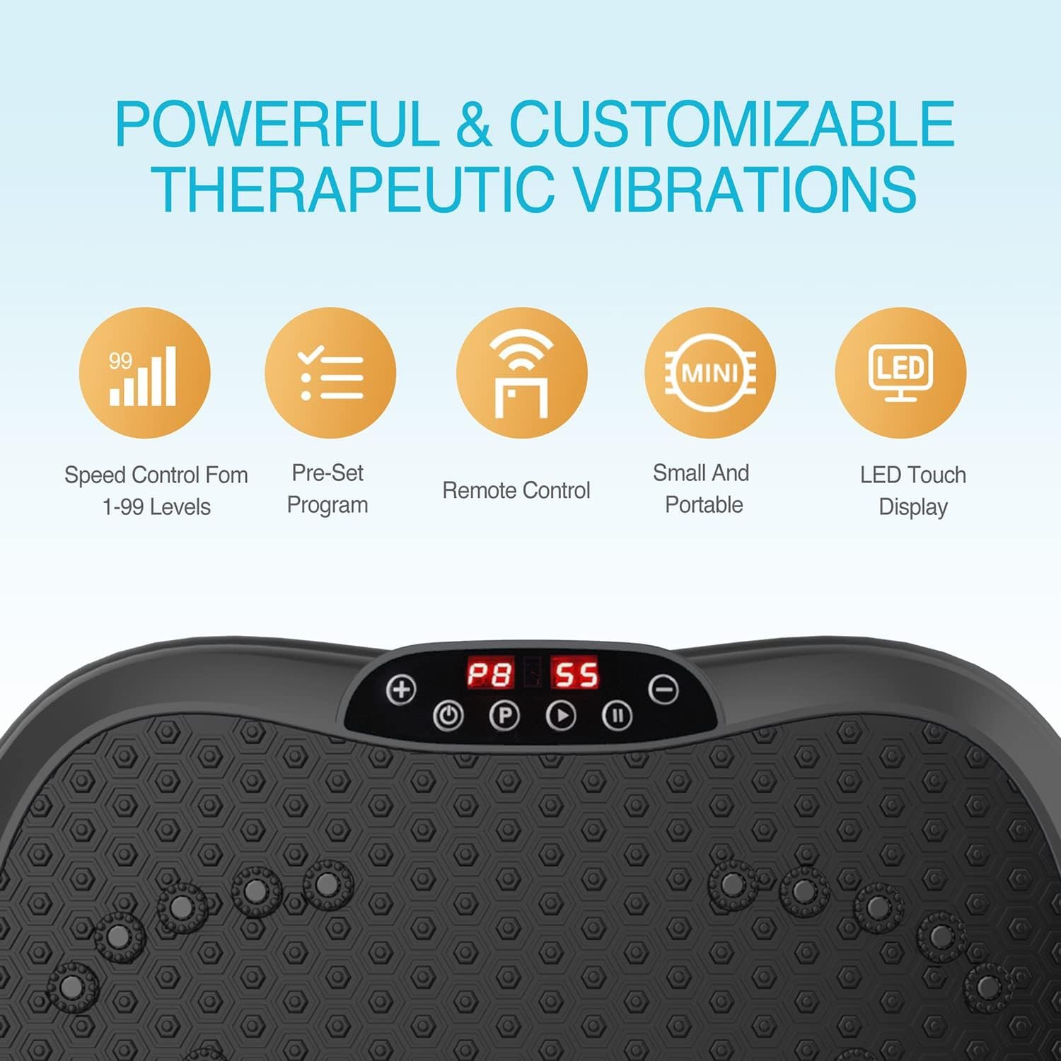 ✅RICH FUNCTIONAL & HIGH EFFICIENT& REMOTE CONTROL: Adjustable vibration speed (1 to 99), with 2 resistance workout bands, can exercise upper body and lower body at the same time. Offering variety of exercise modes, allow you to try different vibration exercises, With this workout machine, you can have your routine exercise done in only 10 minutes everyday. What you’ll get is a better shape and enhanced metabolism, increased bone mineral density, relieve and reduce stress levels.