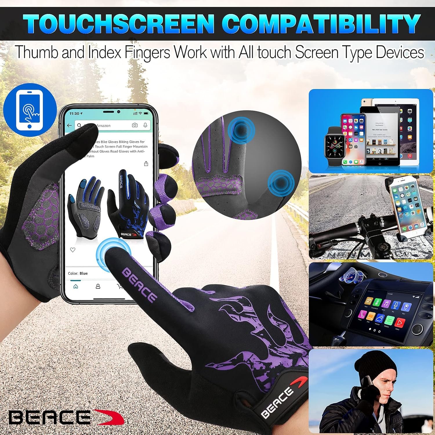 Specification: BEACE Cycling Gloves for Men Women – Full Finger Mountain Bike Gloves With Touch Screen and
