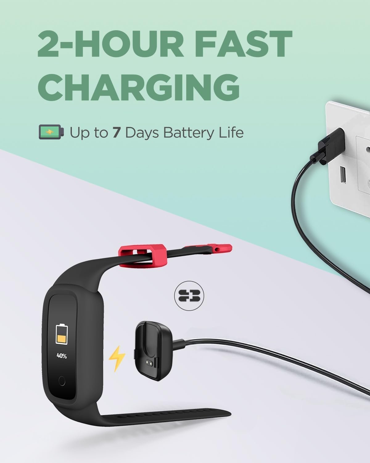 [COMFORTABLE BAND & LONG BATTERY LIFE] Crafted with a soft, lightweight silicone band, this kids pedometer is designed for all-day comfort. Enjoy a long-lasting battery life of up to 7 days on a single charge, with just a 2-hour recharge time.