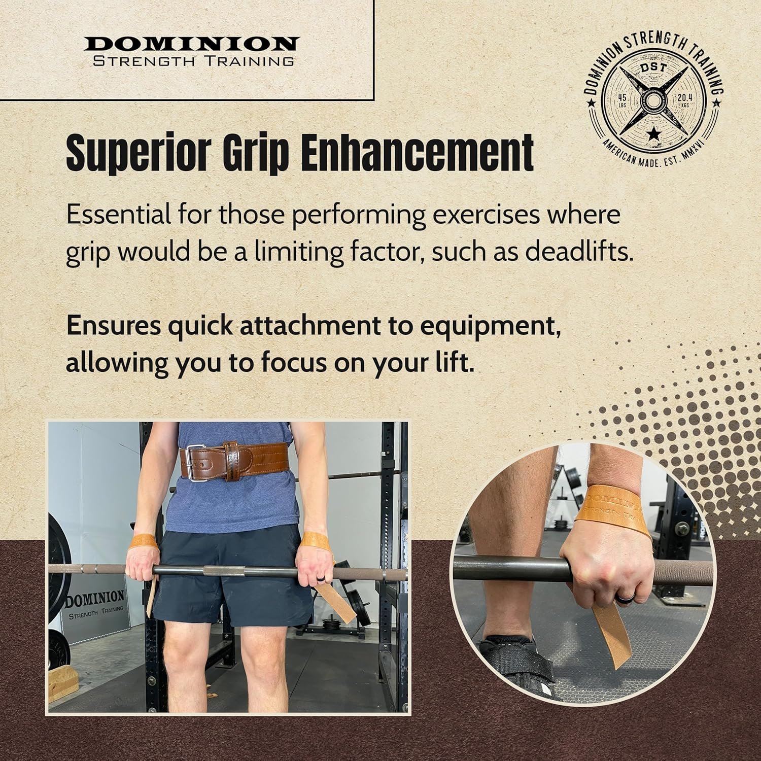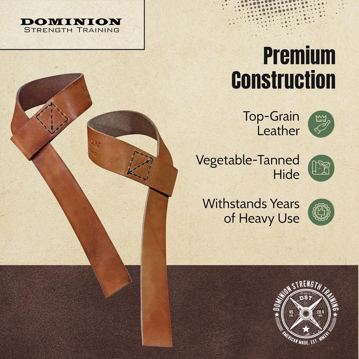 Dominion Strength Training Closed Loop Lifting Straps, Premium Top Grain Vegetable Tanned Leather – Ultimate Grip Assistance for Heavy Pulls and Weightlifting