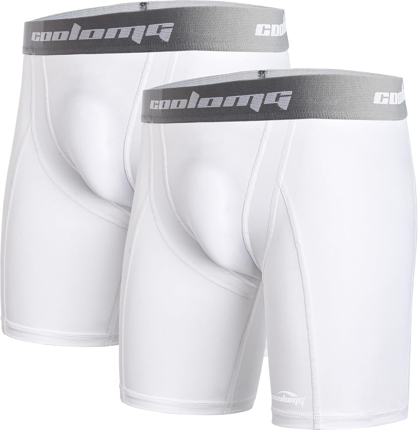 COOLOMG 2-Pack Youth Boys Compression Shorts with Cup Pocket for Baseball Football MMA Lacrosse,NO