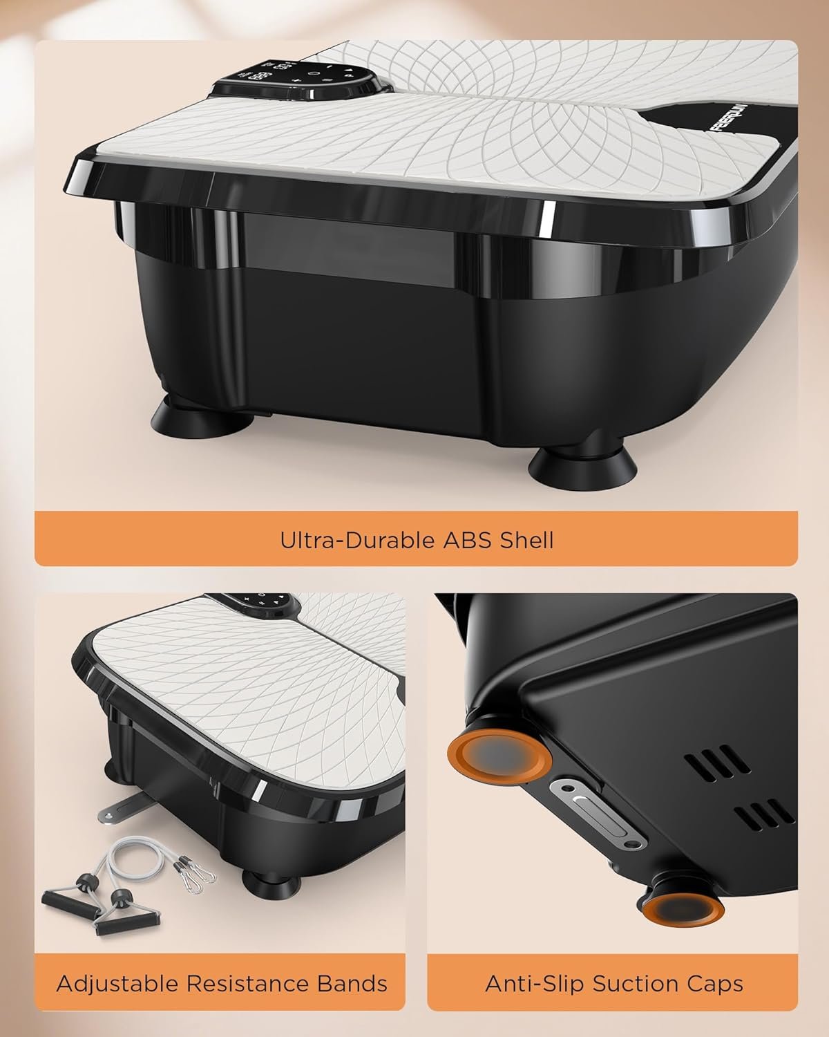 Sturdy to Hold 400lbs: With a sturdy and durable construction, the vibration plate exercise machine supports up to 400lbs; overheat protection and current leakage prevention ensure safe operation
