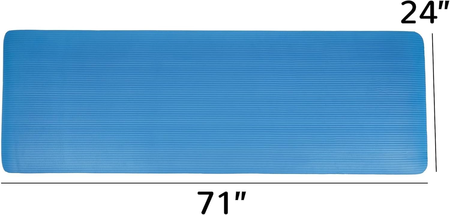 71″ long 24″ wide ensures comfort for people of all shapes and sizes. With high density foam material, the 1/2” thick premium mat comfortably cushions spine, hips, knees and elbows on hard floors