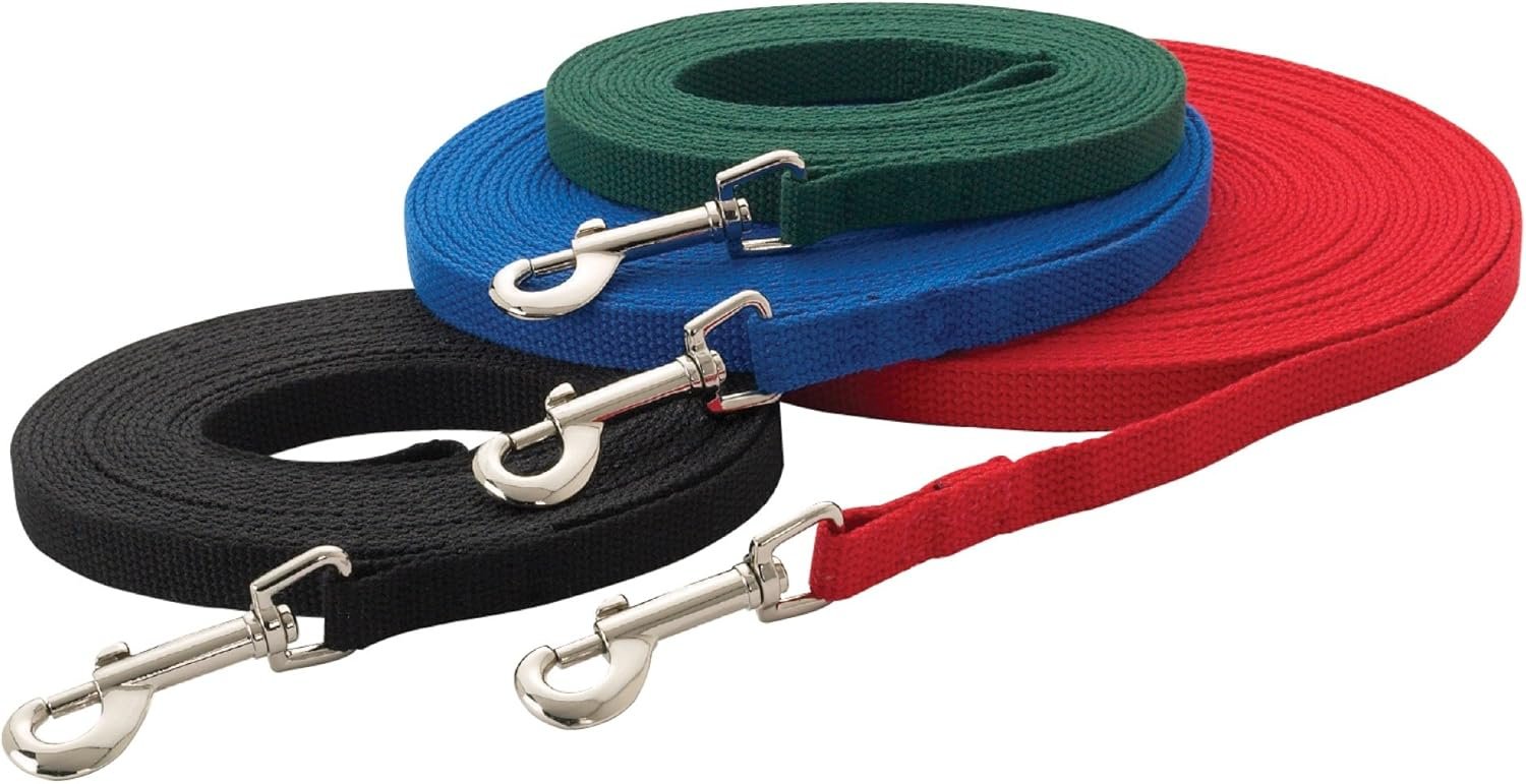 Anyone who handles dogs depend on sturdy leads! Guardian Gear Cotton Web Dog Training Leads are heavy duty, 5/8″ wide and provide extra strength for controlling large dogs. These extra long training leads are designed for distance training. Material: Cotton Blend Size: Leads are available in 4 different colors and 5 different sizes. 5/8″ Wide x 6’ Long 5/8″ Wide x 15’ Long 5/8″ Wide x 20’ Long 5/8″ Wide x 30’ Long 5/8″ Wide x 50’ Long