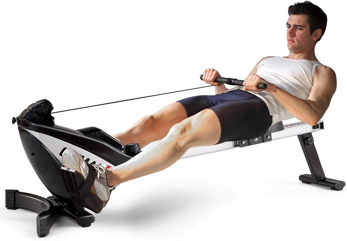 【More Comfortable & Security】 This magnetic rower features a U-shaped seat on rollers that glide smoothly with every row. Large textured pedals with safety straps make your feet remain in place throughout your rowing routine. Tear-resistant nylon rowing strap with non-slip grip handlebars that provide better hold.