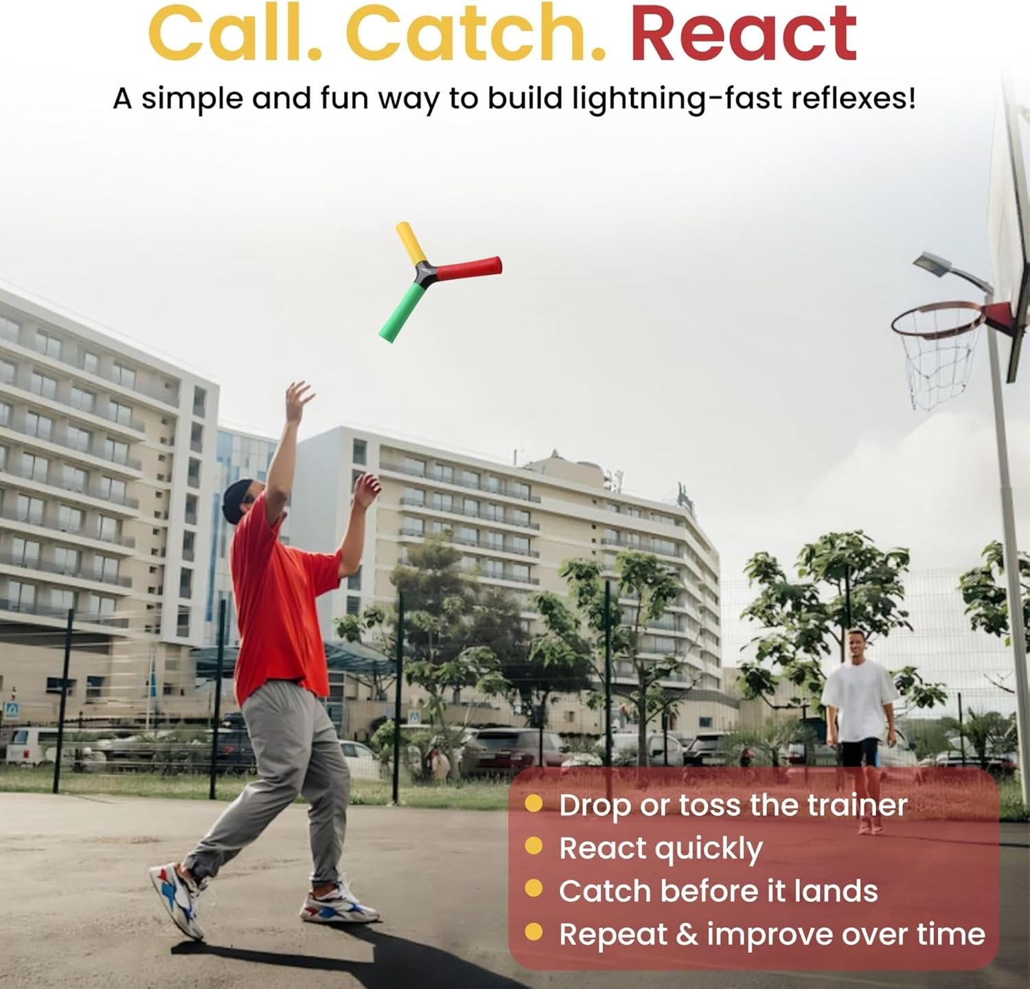 My son is a lacrosse goalie so I’m always on the lookout for things to improve reflexes/reaction speed. If you throw this like a frisbee and spin it quickly it’d be pretty impossible to catch a specific color but if you flip it more end over end or slowly spinning it’s possible to grab the right color.The toy is pretty simple and seems well built. As long as our dog doesn’t get a hold of it I don’t see it breaking. It’s firm but not hard so it doesn’t hurt your hands if it hits them and shouldn’t damage things like wood floors.It seems reasonably priced to me and we’ll keep working with it as a part of my son’s overall reaction work. This is another useful tool in his training toolkit.