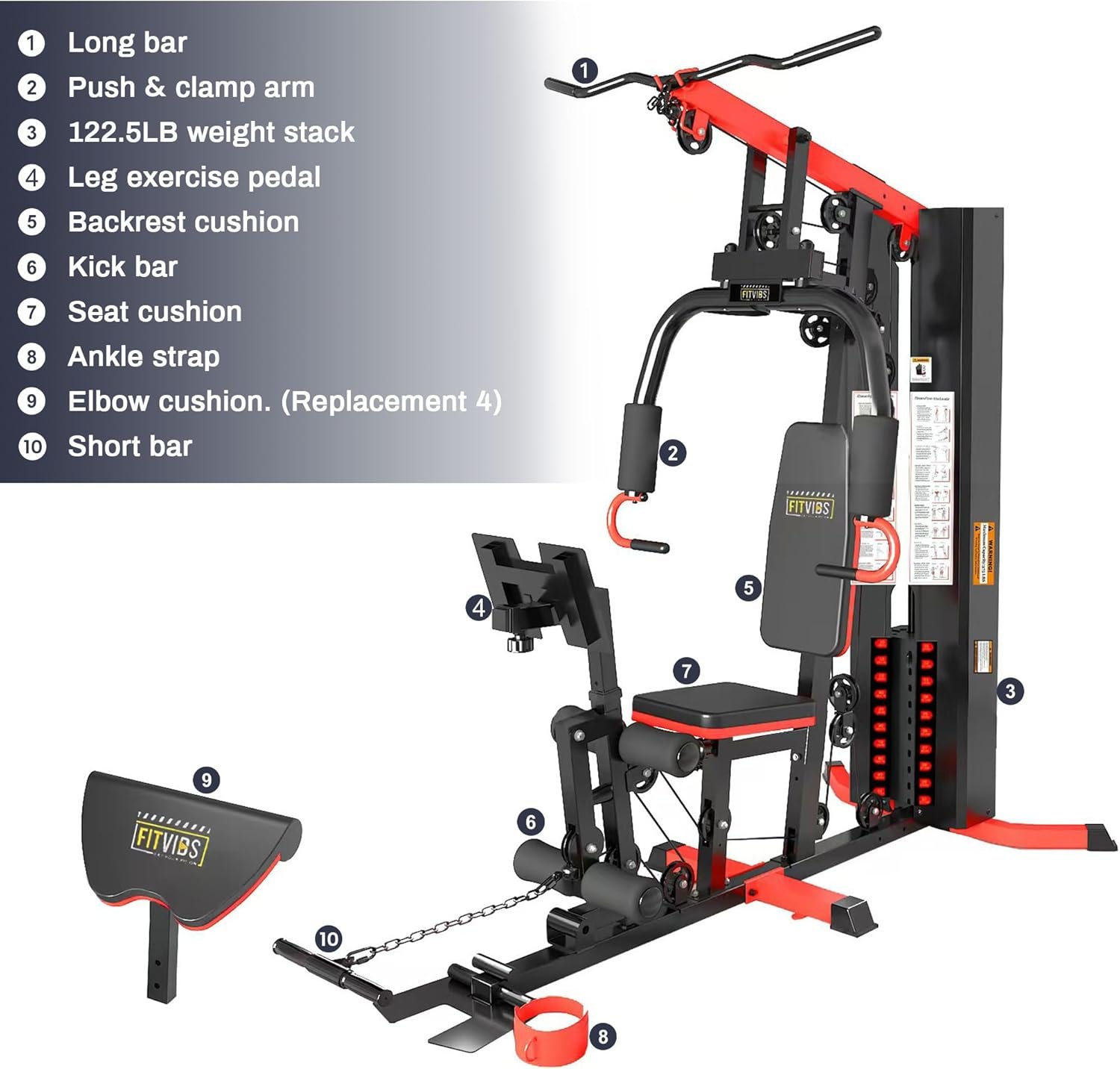 Space-Saving: Exercise equipment size of 42″x68″x78″, Train hard without sacrificing living areas and help achieve muscle-building effects. Fitvids compact home gym fits apartments, garages, and basements. Soft seat cushion provides comfort for every movement