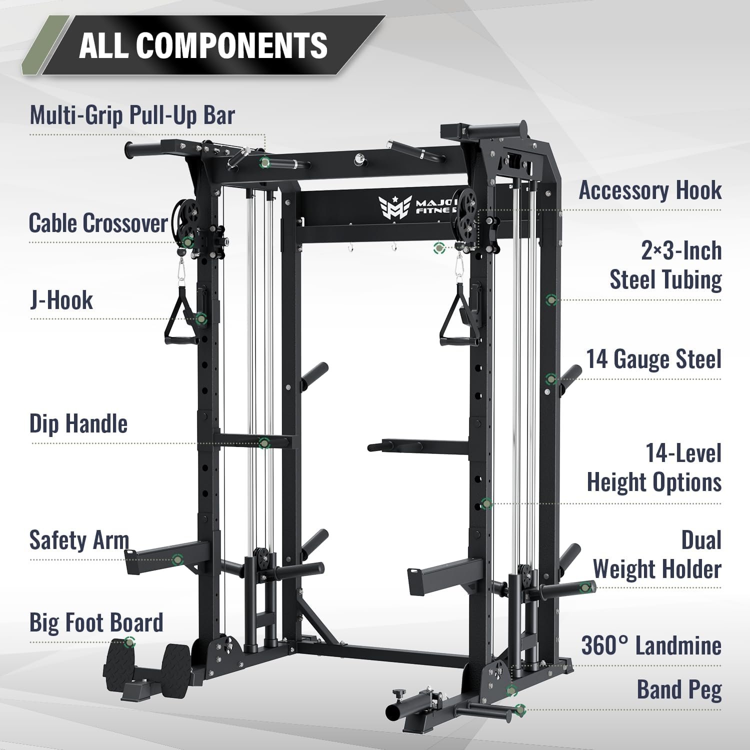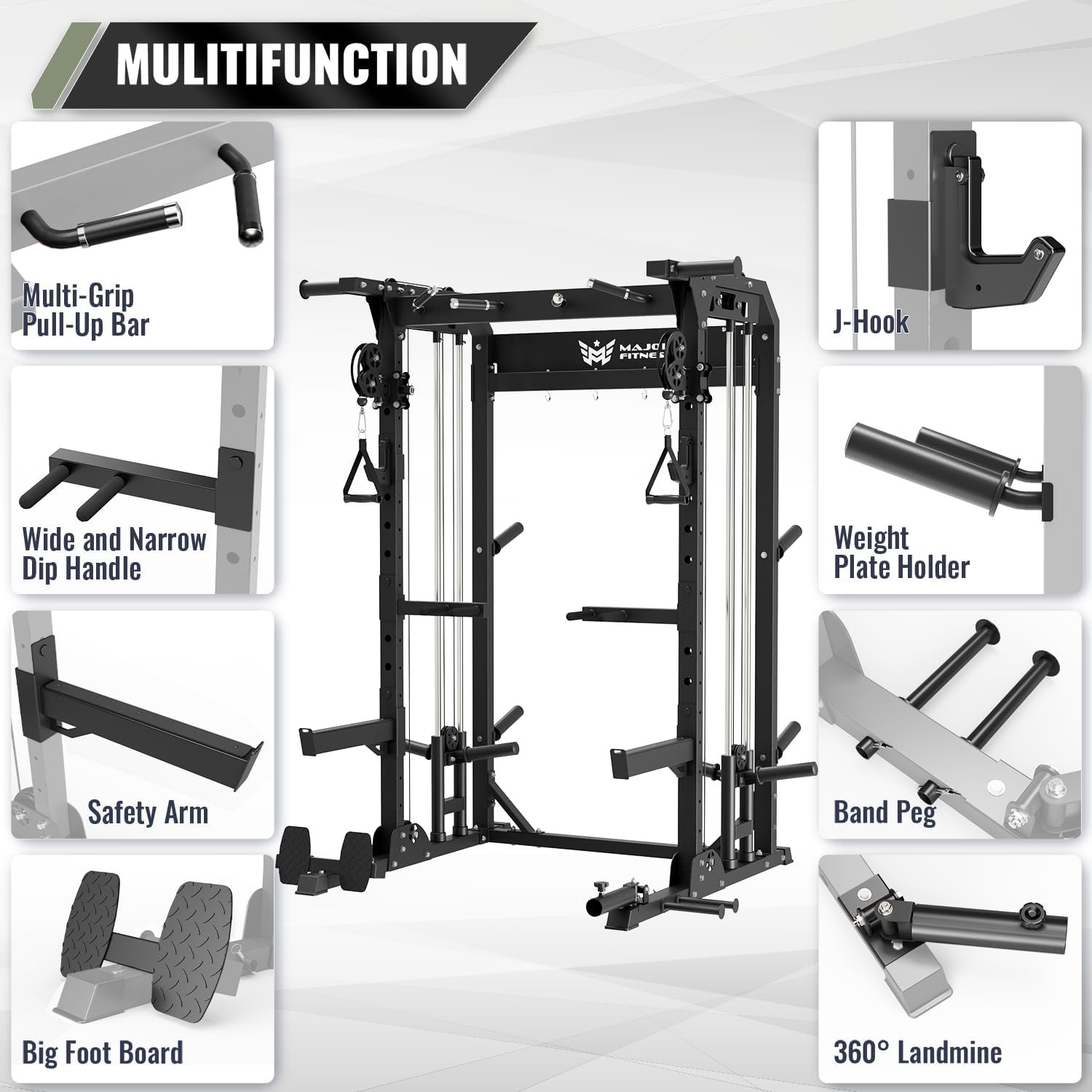 5 reviews for MAJOR FITNESS F22 Power Rack, 1600lbs All-in-One Squat Rack with Cable Crossover, Dual Pulley