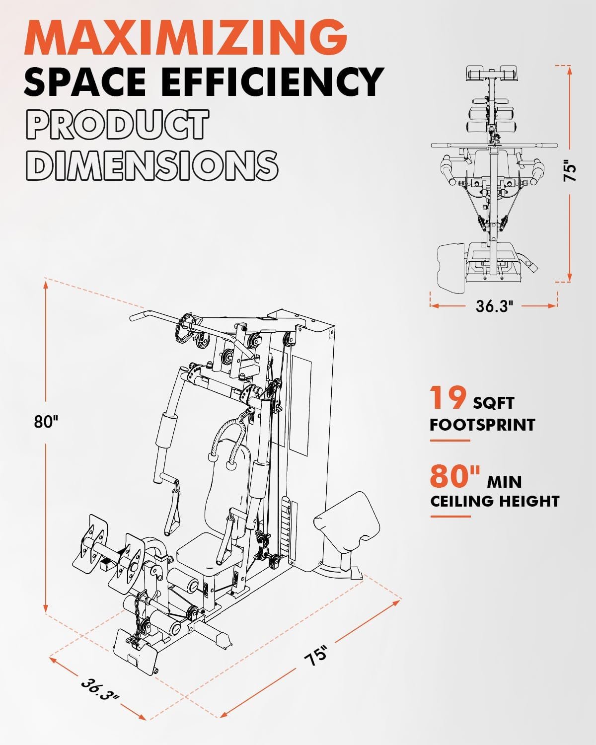 Specification: Mikolo Home Gym, Workout Station with 150LBS Weight Stack, Multifunctional Home Gym Equipment,