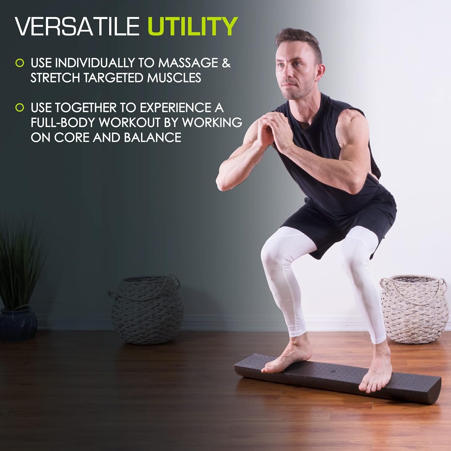 STRETCH & STRENGTHEN – This versatile fitness foam rollers work to help stretch tight muscles after a workout or can be used as a core stabilizer for muscle strengthening. Try with multiple sizes of the dense semi-circle foam rollers together for an extra fun challenge!