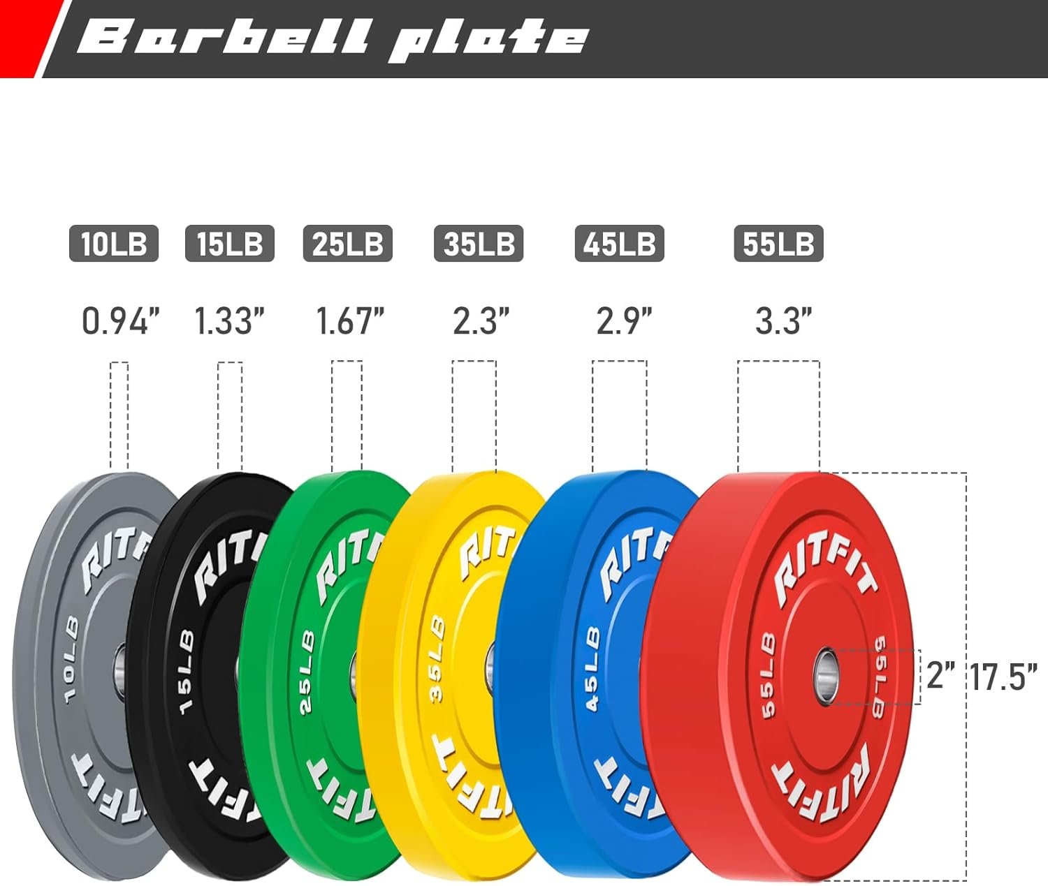 What’s in the package – RitFit PPC03 Power Cage with Cable Crossover System *1; RitFit Adjustable Weight Bench *1; RitFit 2 inch Olympic Barbell *1; RitFit 230LBS Colorful Olympic Bumper Plates Set (10lbs *2, 25lbs *2, 35lbs *2, 45lbs *2); Free Collars *2