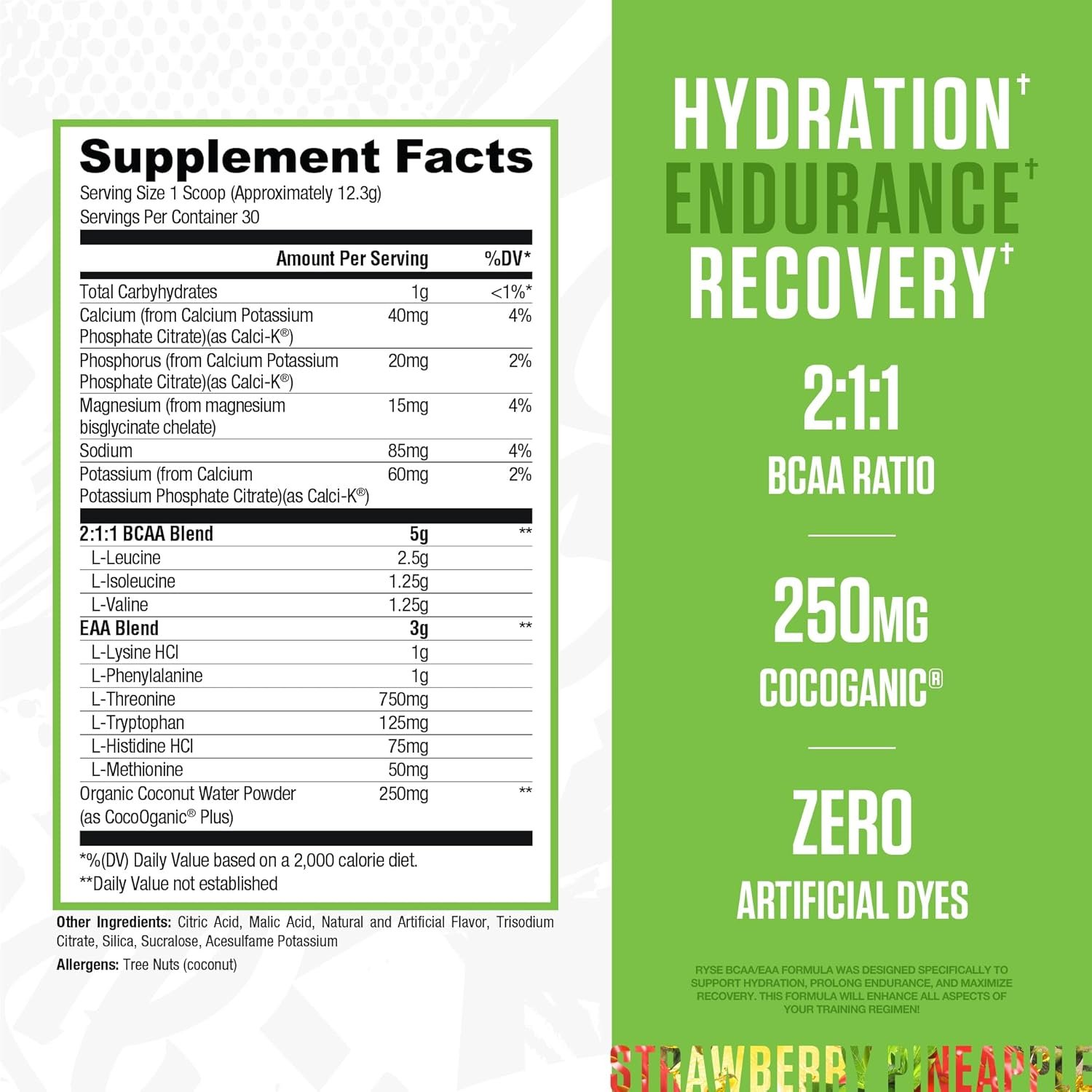 RYSE BCAA EAA Powder – Strawberry Pineapple – 5g Branched Chain Amino Acids, 3g Essential Aminos,