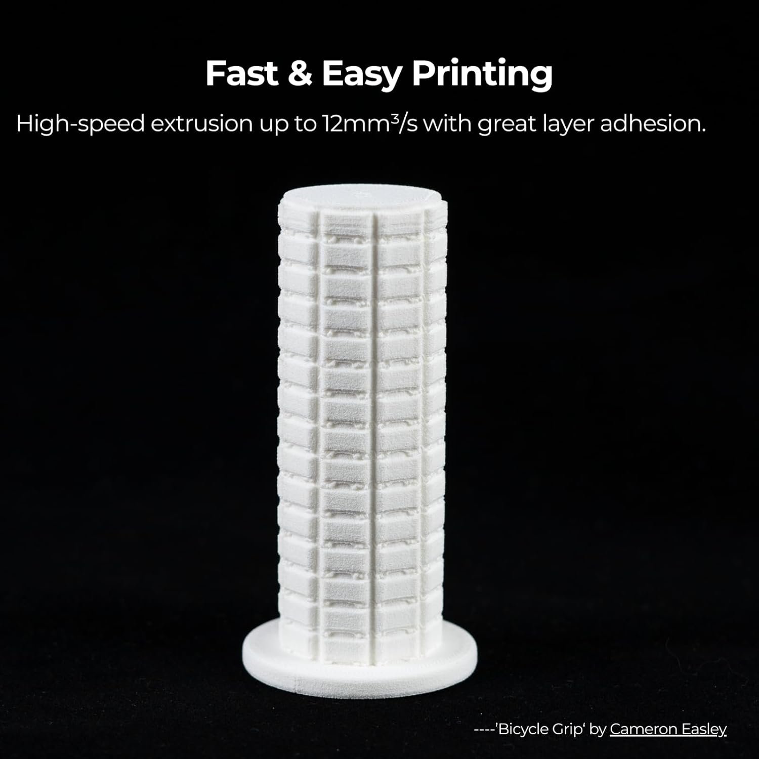 Optimized for Easy Printing: TPU Air utilizes active foaming technology. The unactivated foaming component is evenly distributed within the filament. This results in the filament maintaining better hardness compared to passive foaming materials, which results in easier filament transportation and printing. The filament density is also maintained. Compatible with most FDM printers, it supports extrusion flow rates up to 12mm³/s for fast, smooth printing.