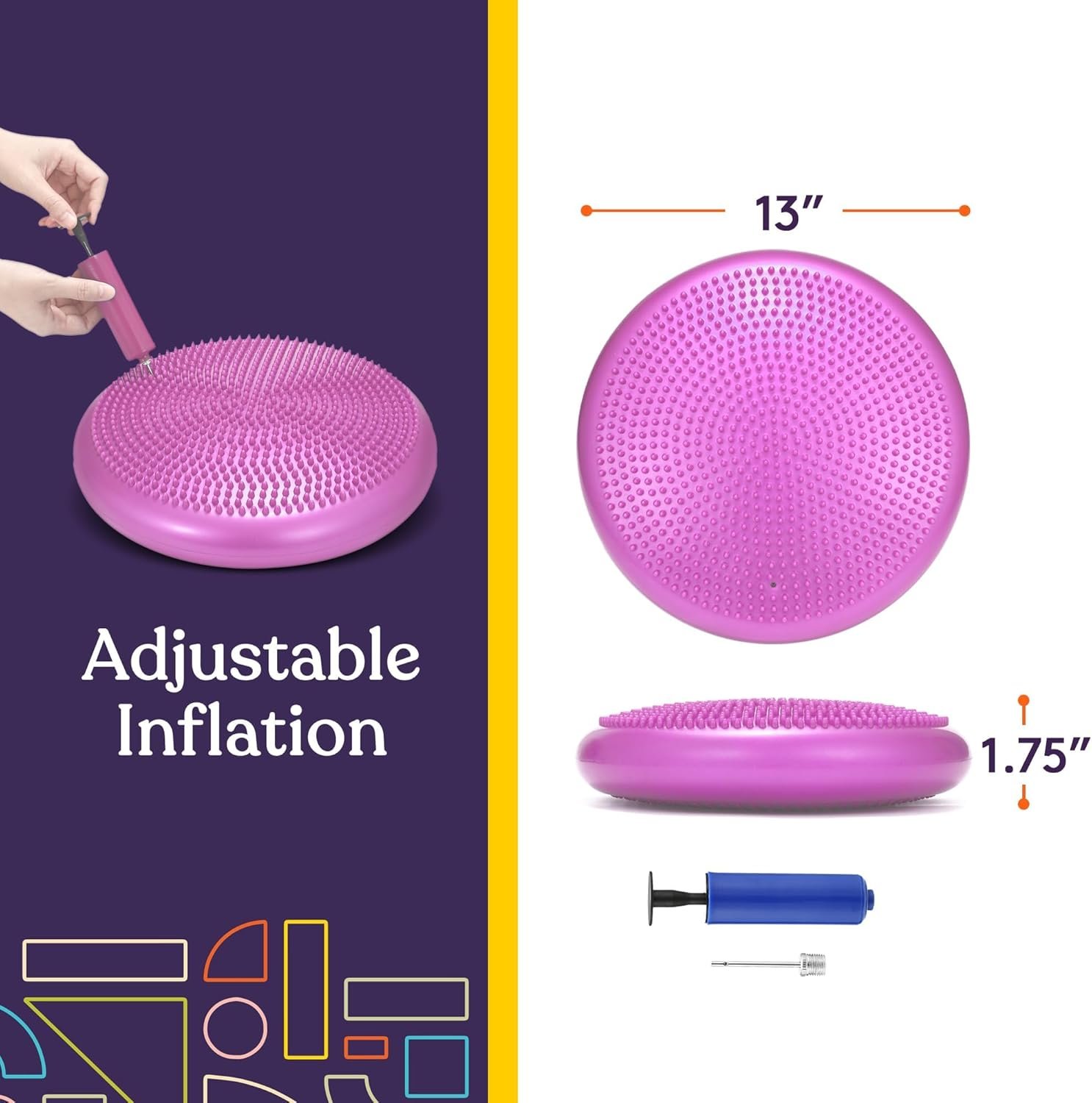 Complimentary Air Pump – Each wobble cushion also comes with an easy-to-use manual air pump to help you fill up the balance pad and ensure a stable standing or seated position. This air pump can also be used for other sports balls or gear.
