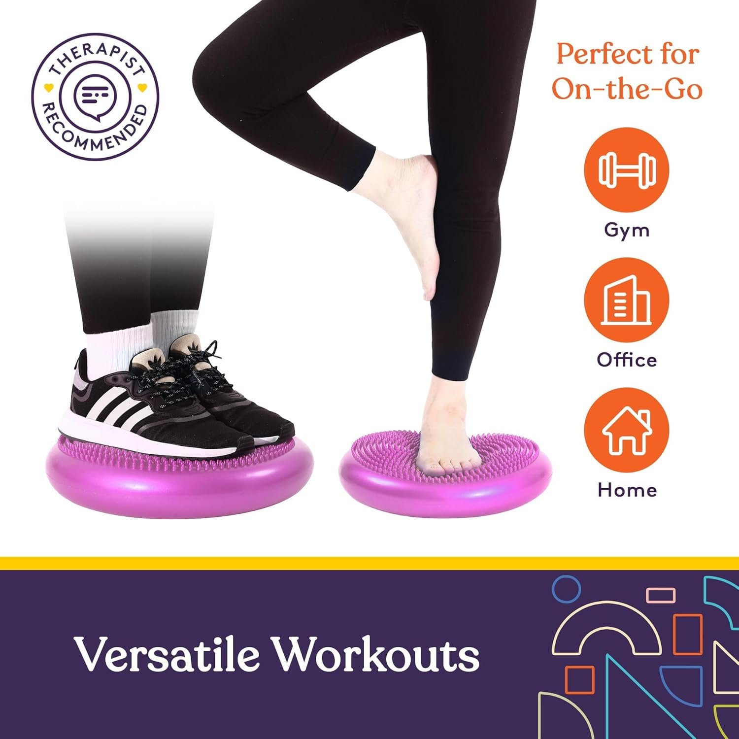 Multipurpose Stability Trainer – Great for sitting, standing, or active fitness and exercise, this wobble cushion was designed to improve core strength, coordination, and balance while providing multiple ways to train or recover.