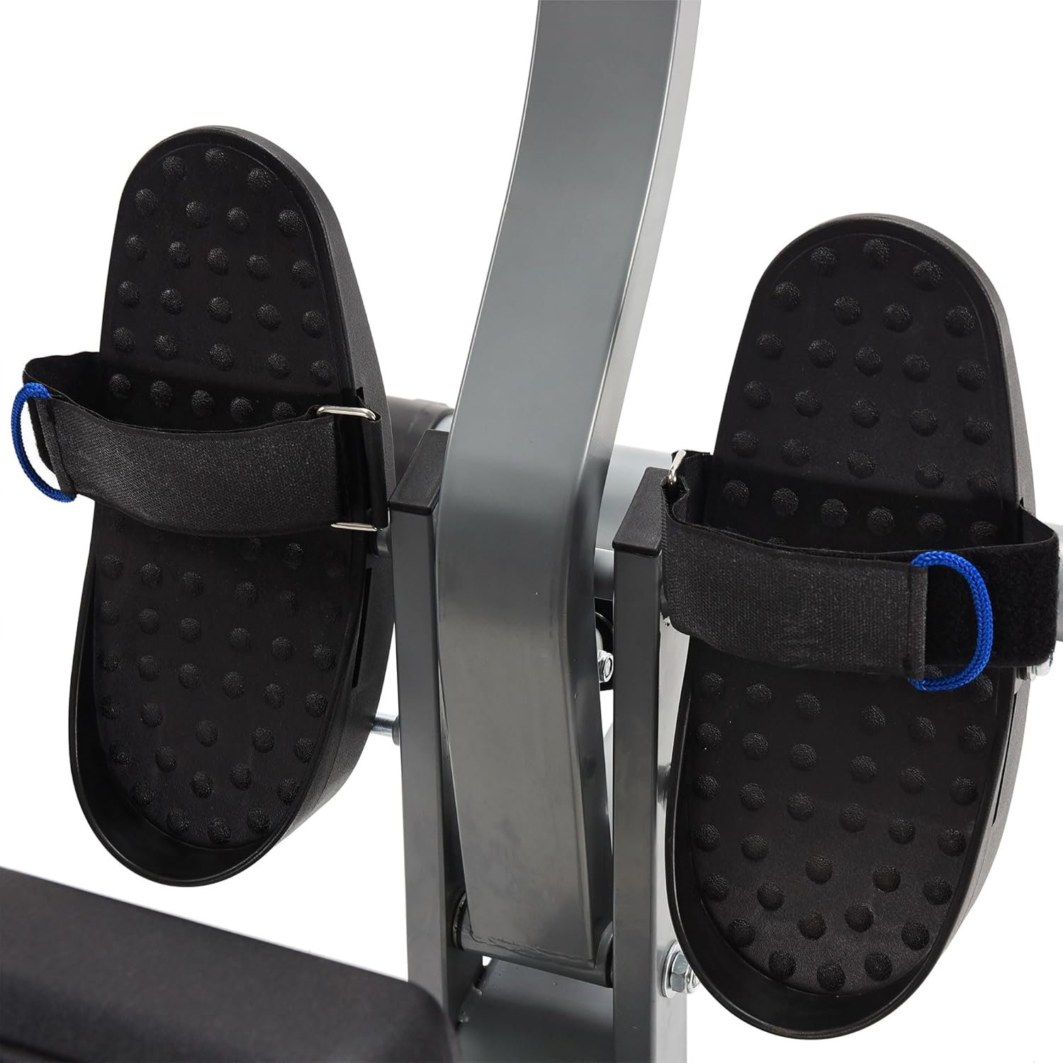 FOR LASTING COMFORT – This row machine is designed with a padded and molded seat for comfort during longer rowing routines. This rower also has textured footplates with straps to keep your feet secure.