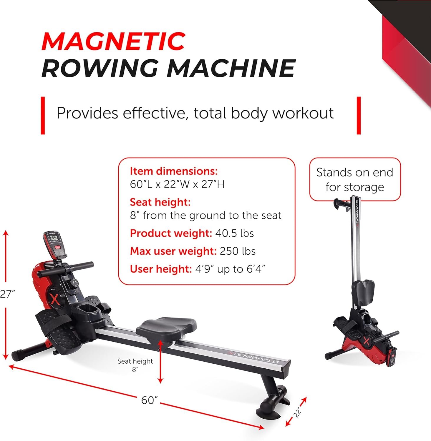 Specification: Stamina Magnetic Rower – Rower Machine with Smart Workout App – Rowing Machine with Magnetic
