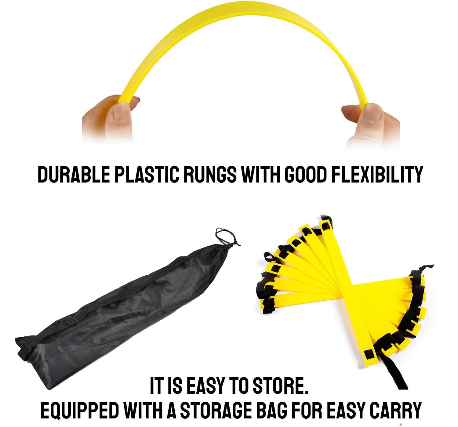 Ideal Tool for Outdoor Sports: This speed training ladder is great tool for you to improve quickness through accelerated foot strike and lift frequency. The agility ladder comes with a carrying bag, which is very convenient for you to train anytime anywhere.
