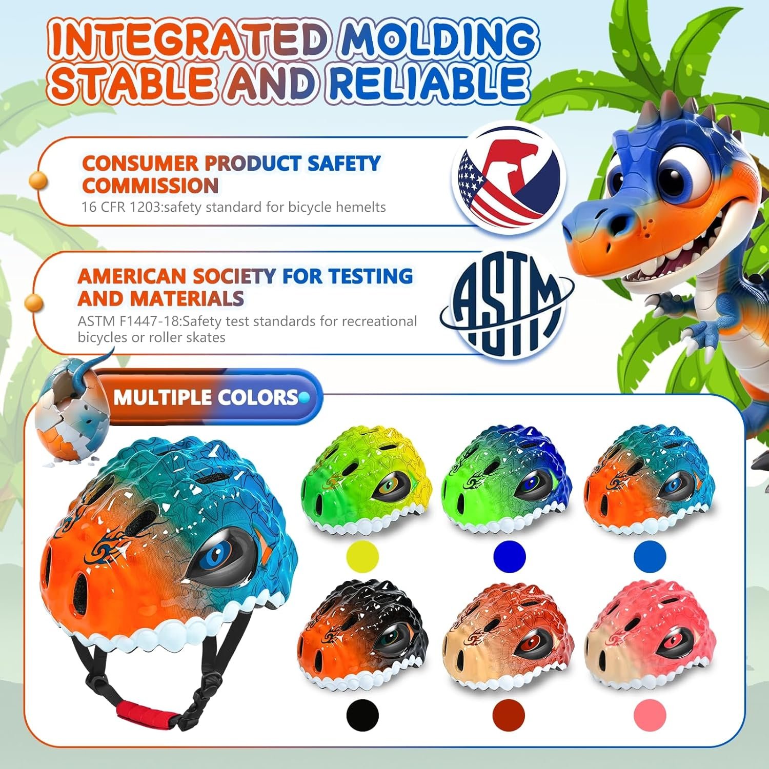 【LIGHTWEIGHT AND ADJUSTABLE】Bike helmet adopts one-piece molding technology. S: 18.9″-21.2″/48-54cm, suitable for most toddlers and kids. M: 21.65″-22.84″/55-58cm, suitable for older big kids and youth. Equipped with an adjustable head circumference adjustment disc and chin strap, it can be adjusted according to the child’s growth.