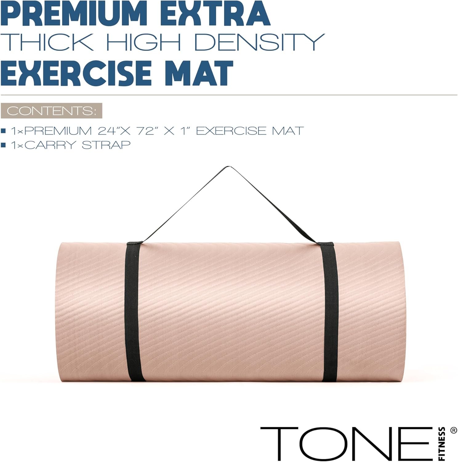 Tone Fitness 1-Inch Thick Yoga Mat | High-Density, Non-slip Exercise Mat with Carrying Strap for