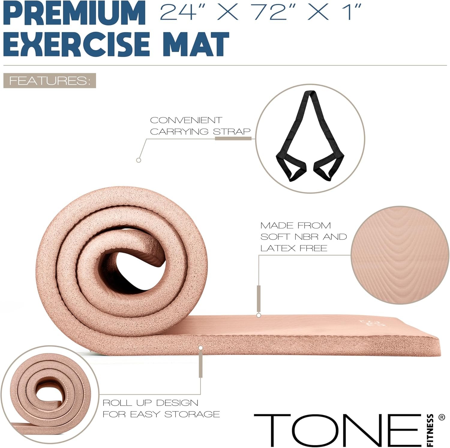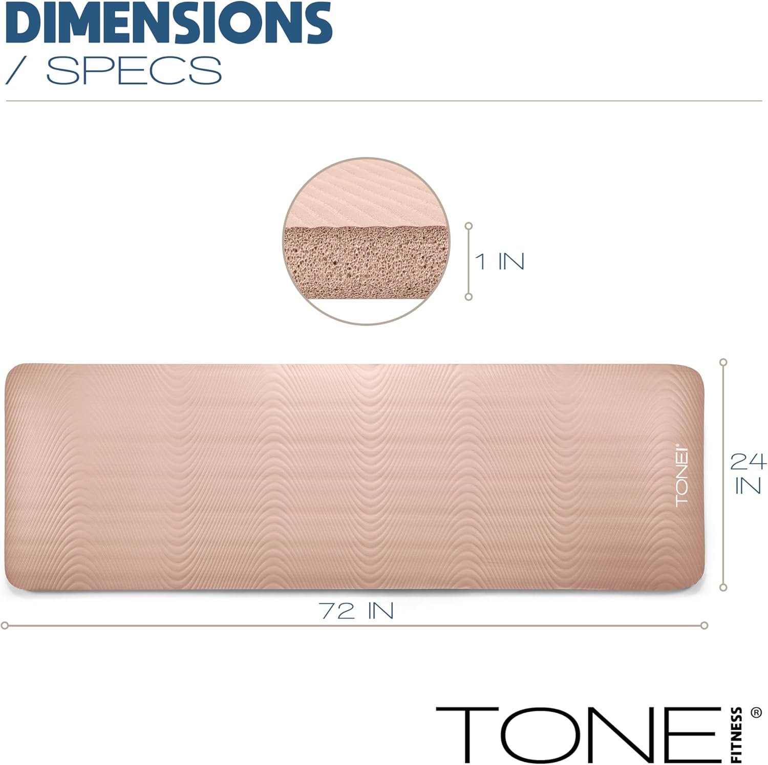 Specification: Tone Fitness 1-Inch Thick Yoga Mat | High-Density, Non-slip Exercise Mat with Carrying Strap for