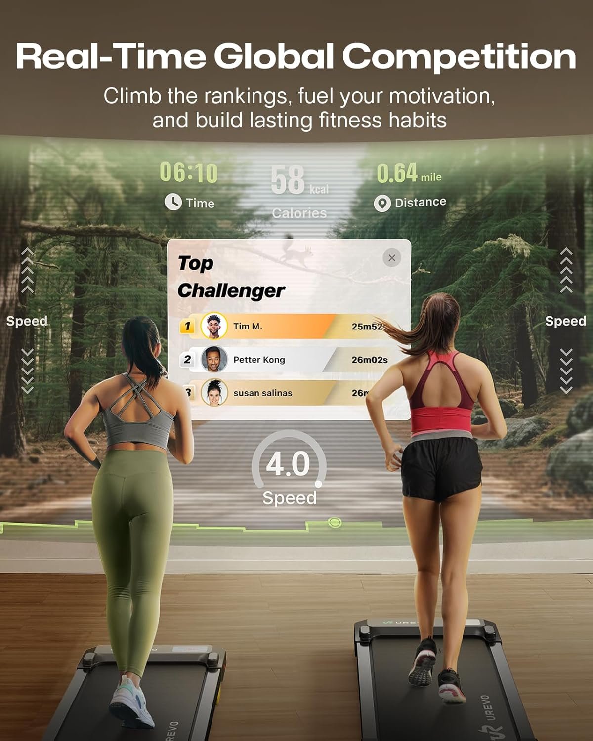 ăReal-Time Fitness Tracking ăYour Fingertips Syncs seamlessly via Bluetooth to track calories, steps, distance and workout duration in real-time Immersive Virtual Running Experiences/ Explore 50+ global routes from beaches to mountain trails/ Race against virtual opponents in 3D environments