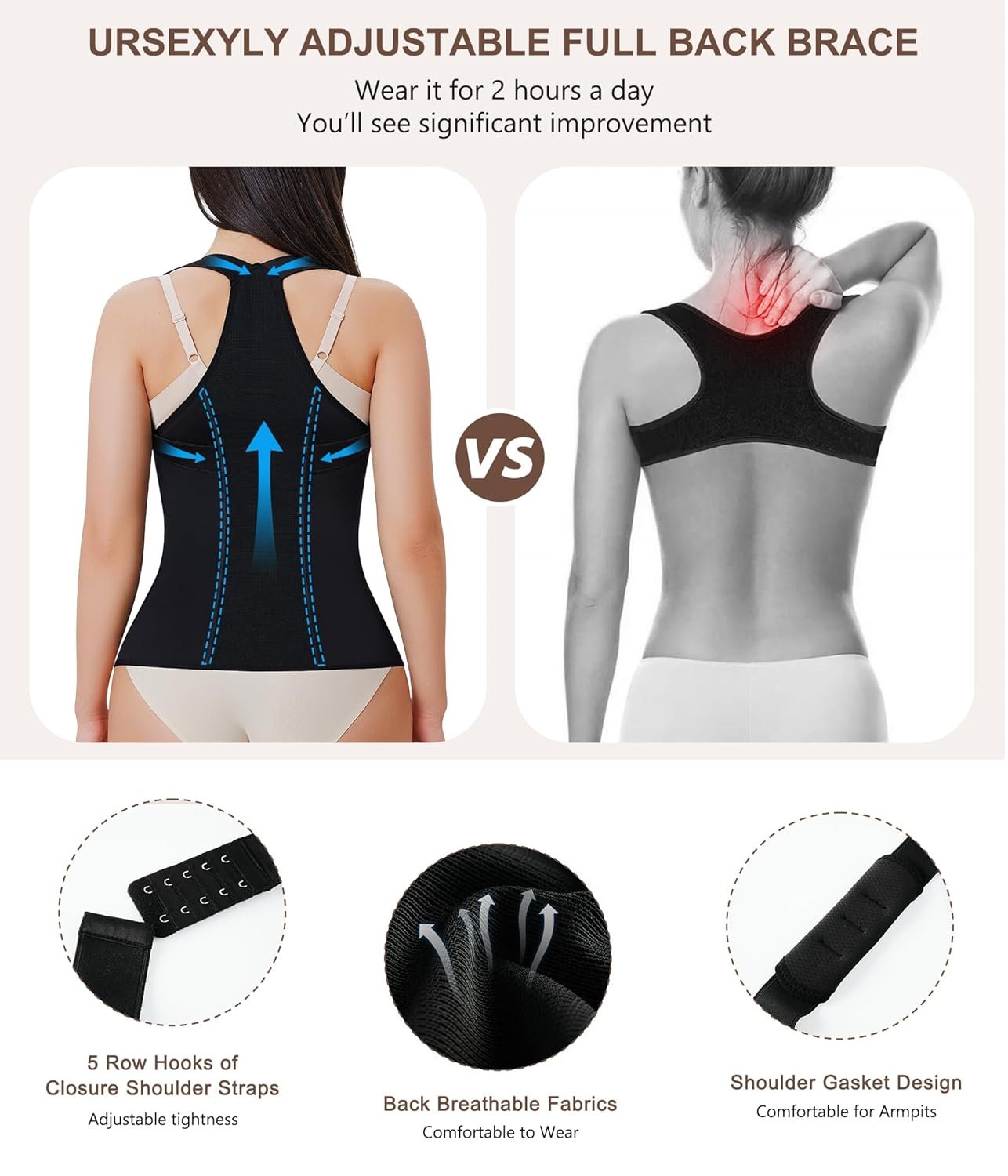 URSEXYLY Back Brace Posture Corrector for Women Adjustable Full Back Support Shoulder Straightener