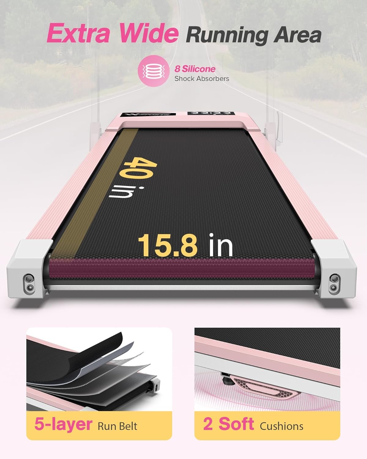 Anti-Slip Belt & Shock Absorption: The Wellfit treadmill offers a spacious 40” x 15.8” running area with 5 layers of anti-slip running belt for added safety. Equipped with 8 silicone shock absorbers and 2 soft rubber pads, it delivers superior cushioning to protect your knees and muscles, ensuring a comfortable and safe running experience.