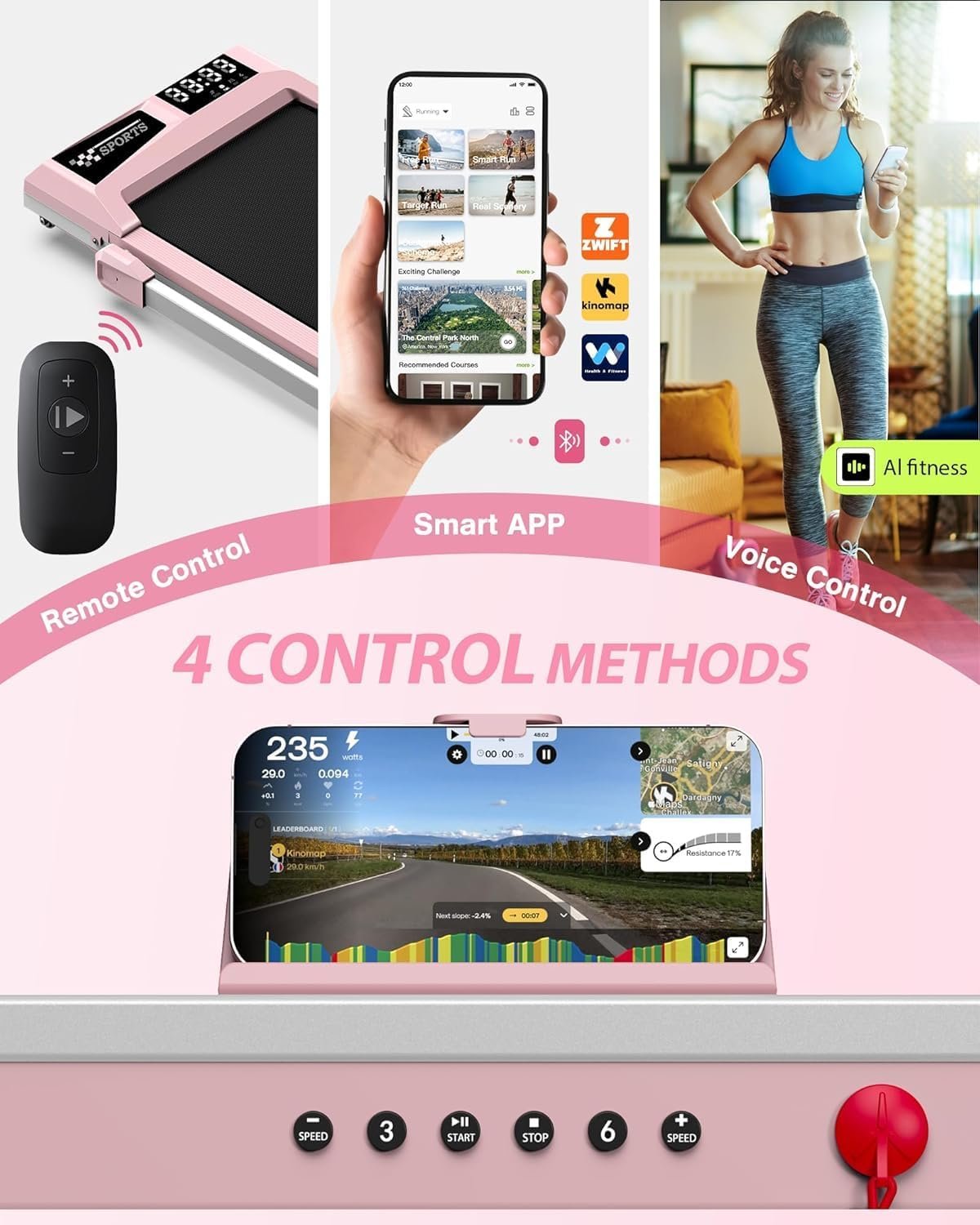 Get More Fun from Fitness Apps: You can easily control the treadmill using the voice control feature of the WellFit app while running or walking. The Wellfit App also offers a variety of preset workout programs that provide you with different challenges and goals to keep your workouts interesting and effective. No subscription fee! Plus, the treadmill is compatible with popular fitness apps like Zwift and Kinomap, making it easy to match your unique workout style and stay motivated.