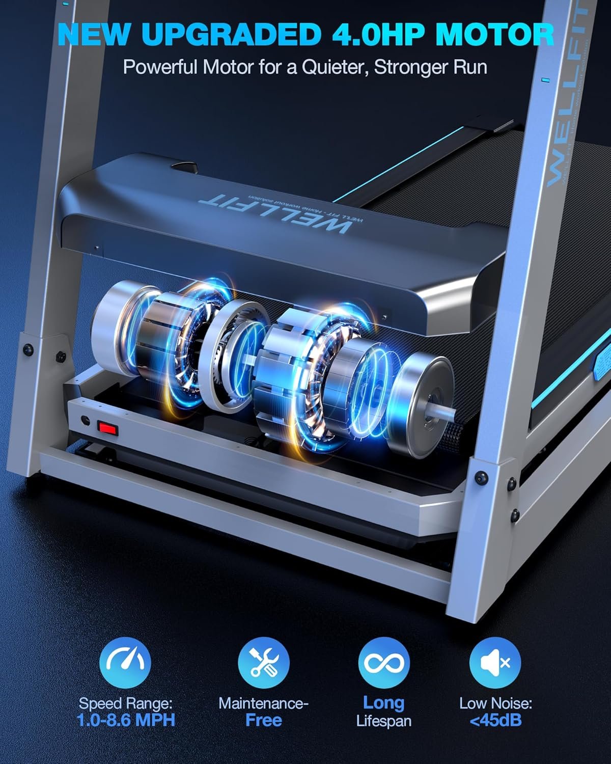 Specification: WELLFIT Treadmill with 15% Auto Incline, 400lbs Treadmills with Handlebar for Home, Voice Control