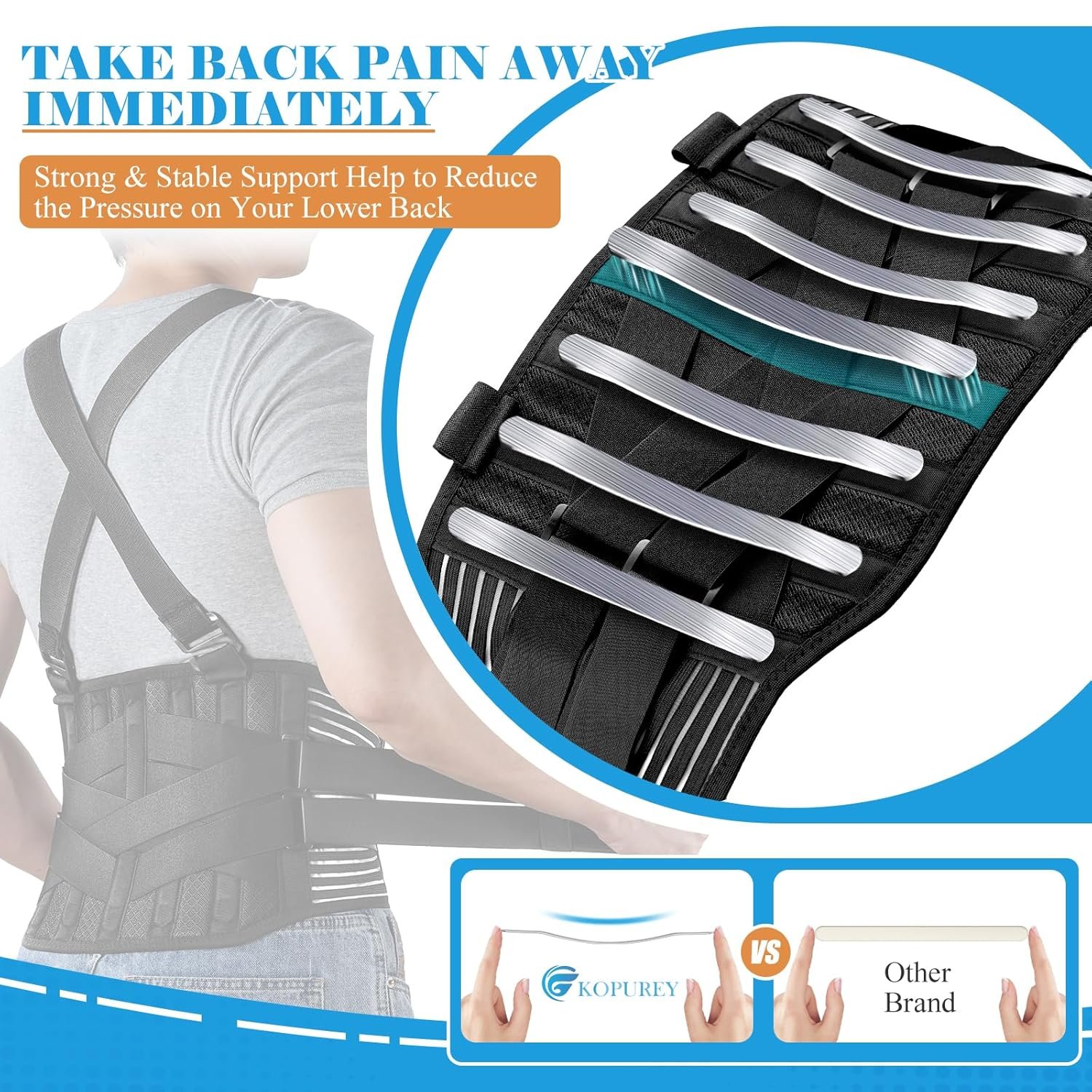 ✅【360° Protection for Your Safety & Pain Relief 】- KOPUREY Work back brace effectively helps reduce lumbar spine strain caused by long-term incorrect gravity work posture, standing and sitting back postures. Relieves long-term chronic back pain, prevents further strains and sprains caused by overuse of lumbar strength, helps to develop correct lifting posture, better working and sitting postures. 360° back protection to ensure safety.