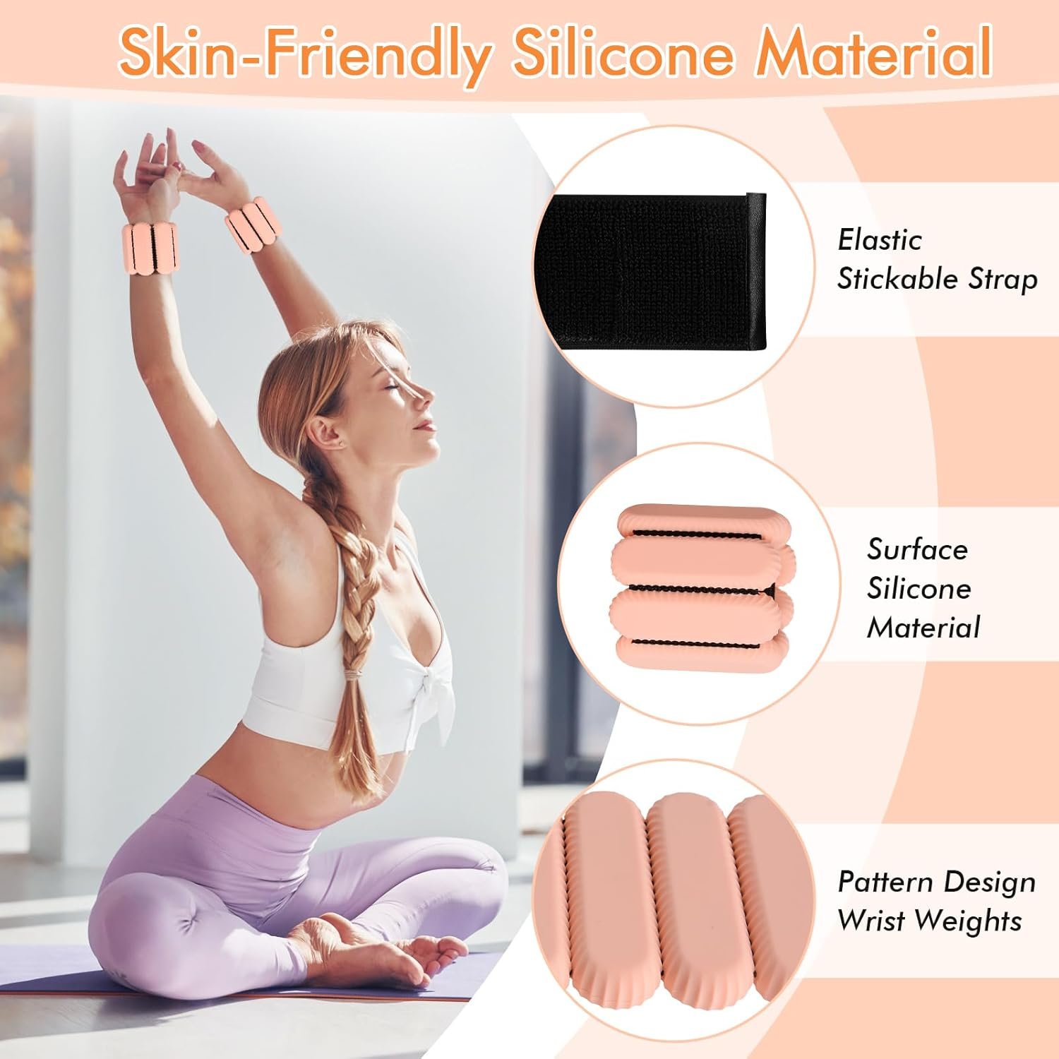 SKIN-FRIENDLY SILICONE MATERIAL: The wrist ankle weights are made of high-quality silicone material, ensuring a comfortable and gentle touch against your skin. The soft silicone wraps around the stainless steel weights, providing a frictionless exercise experience without causing any damage to your skin.
