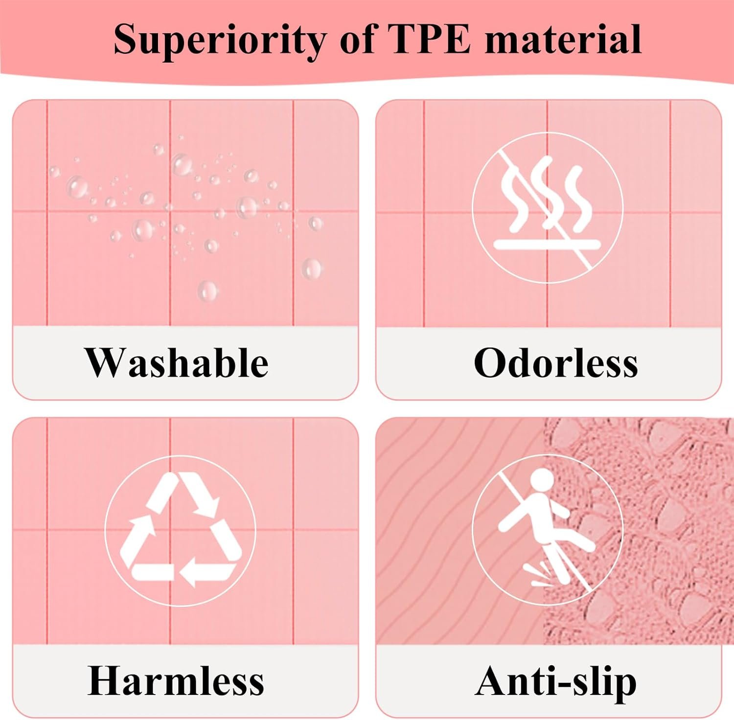 I bought this for my senior dog so that he could have a grippy area by his bed. This has given him wonderful traction getting in and out of his bed and is super easy to clean. This also grips to the floor so it doesn’t move around when he walks on it.